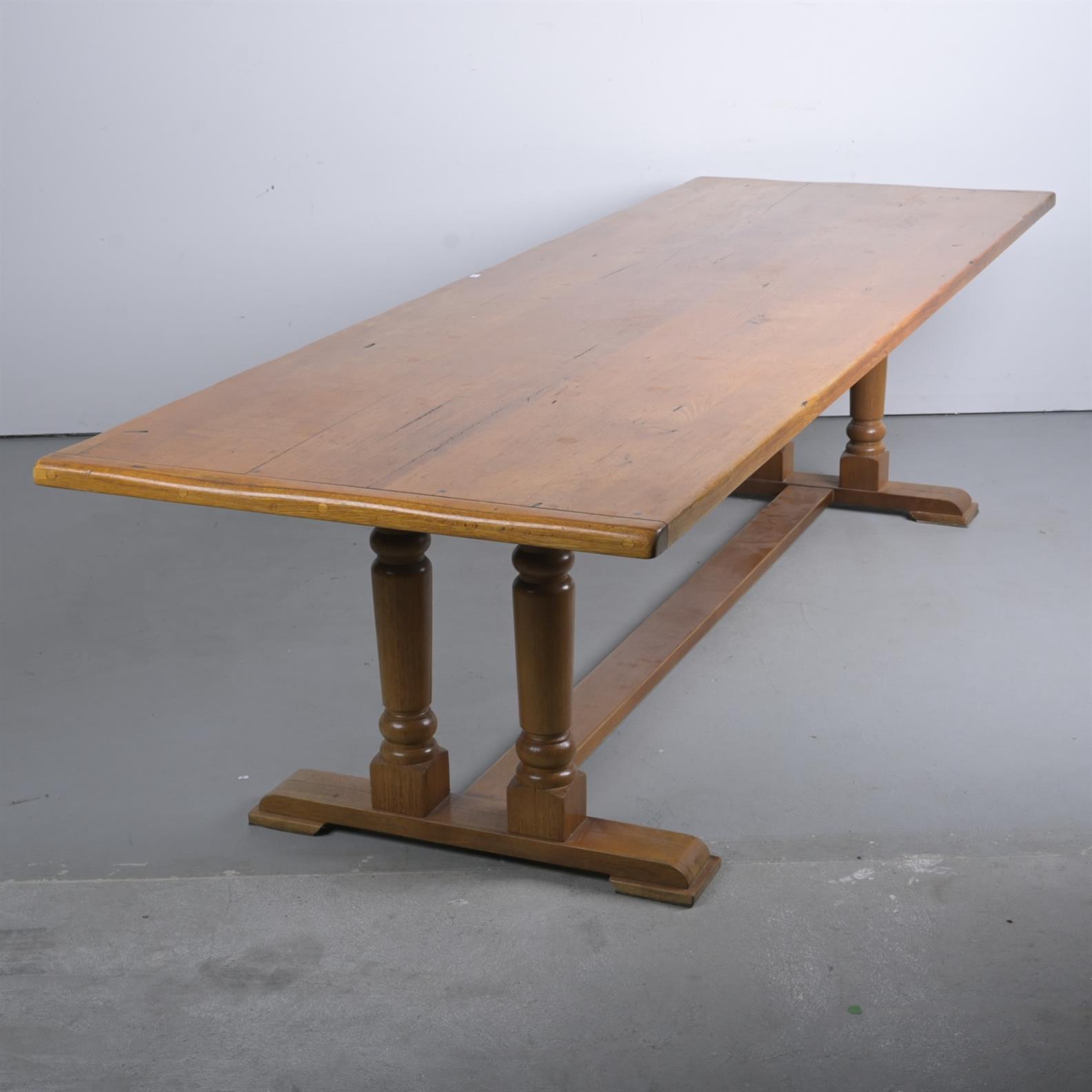 A LARGE AUSTRALIAN HARDWOOD REFECTORY TYPE DINING TABLE BY CAVENDISH FURNITURE (77H X 305W X 98D CM) (THIS ITEM MUST BE REMOVED BY CARRIERS AT THE CUSTOMER'S EXPENSE. LEONARD JOEL STAFF CANNOT ASSIST CARRYING THIS ITEM.)
