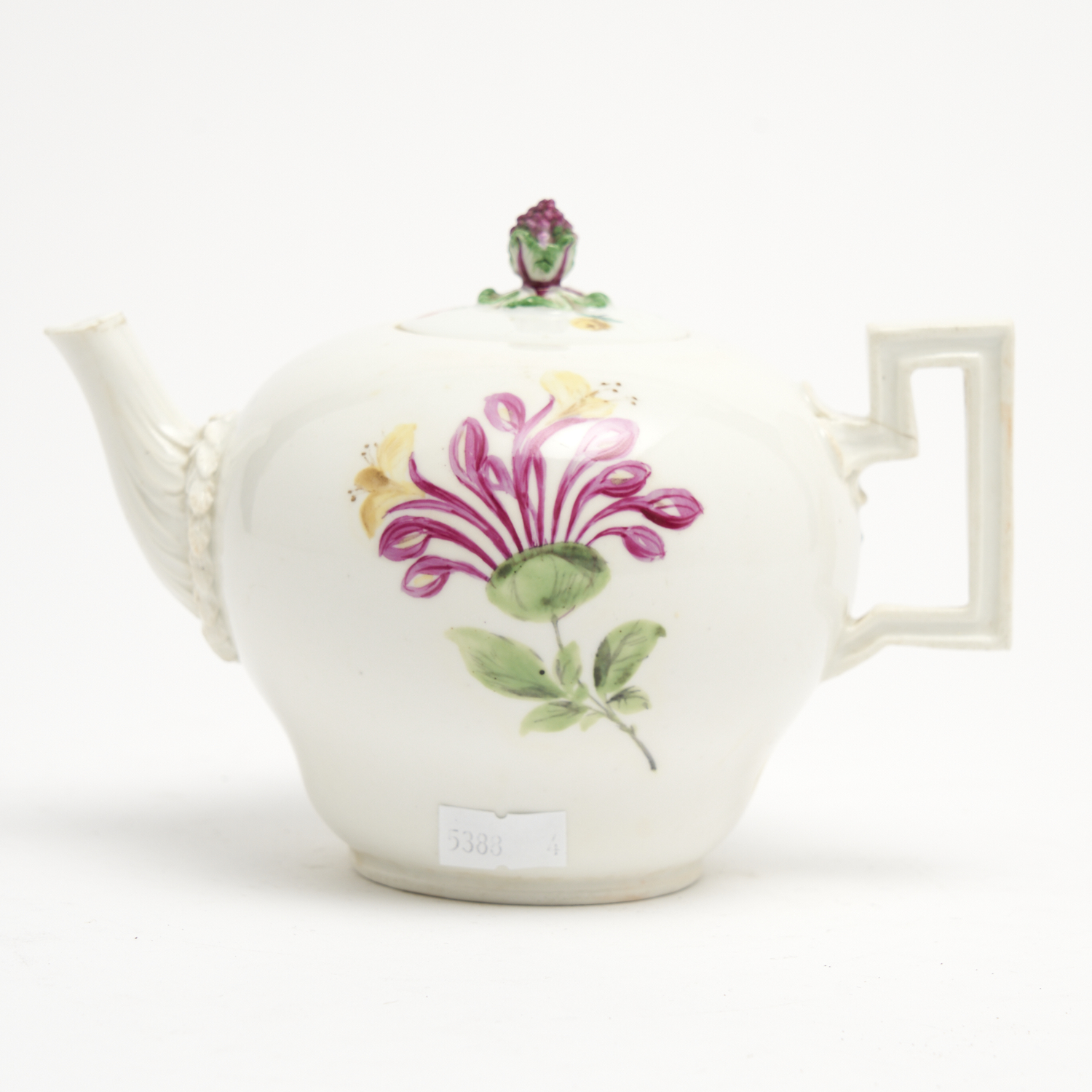 A LATE 18TH CENTURY/EARLY 19TH CENTURY MEISSEN FLORAL DECORATED PORCELAIN TEAPOT (A/F) H.11.5CM
