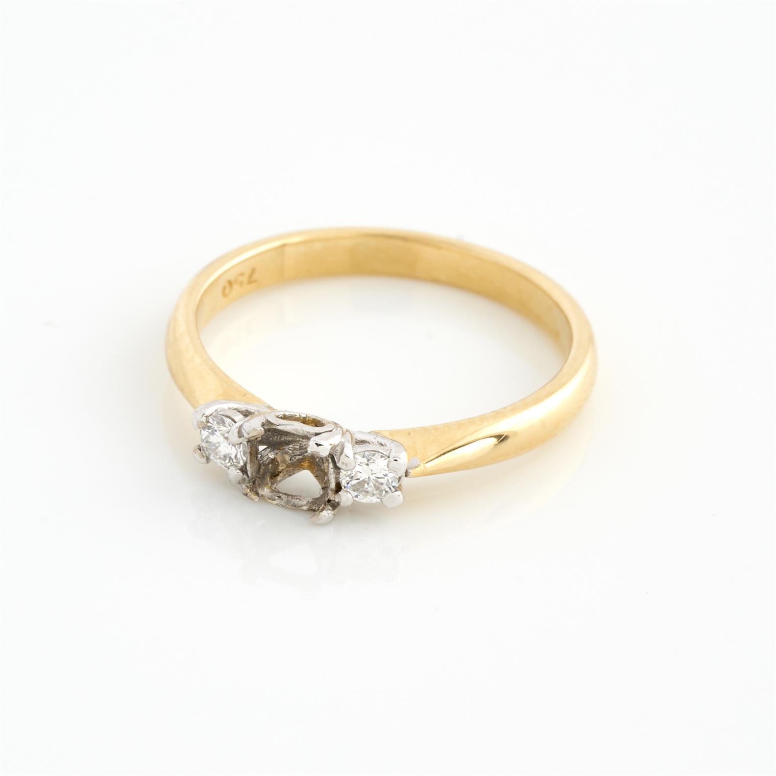 A DIAMOND RING SHANK IN TWO-TONE 18CT GOLD, SIZE N, 2.9GMS. A/F (CENTRAL DIAMOND DEFICIENT)