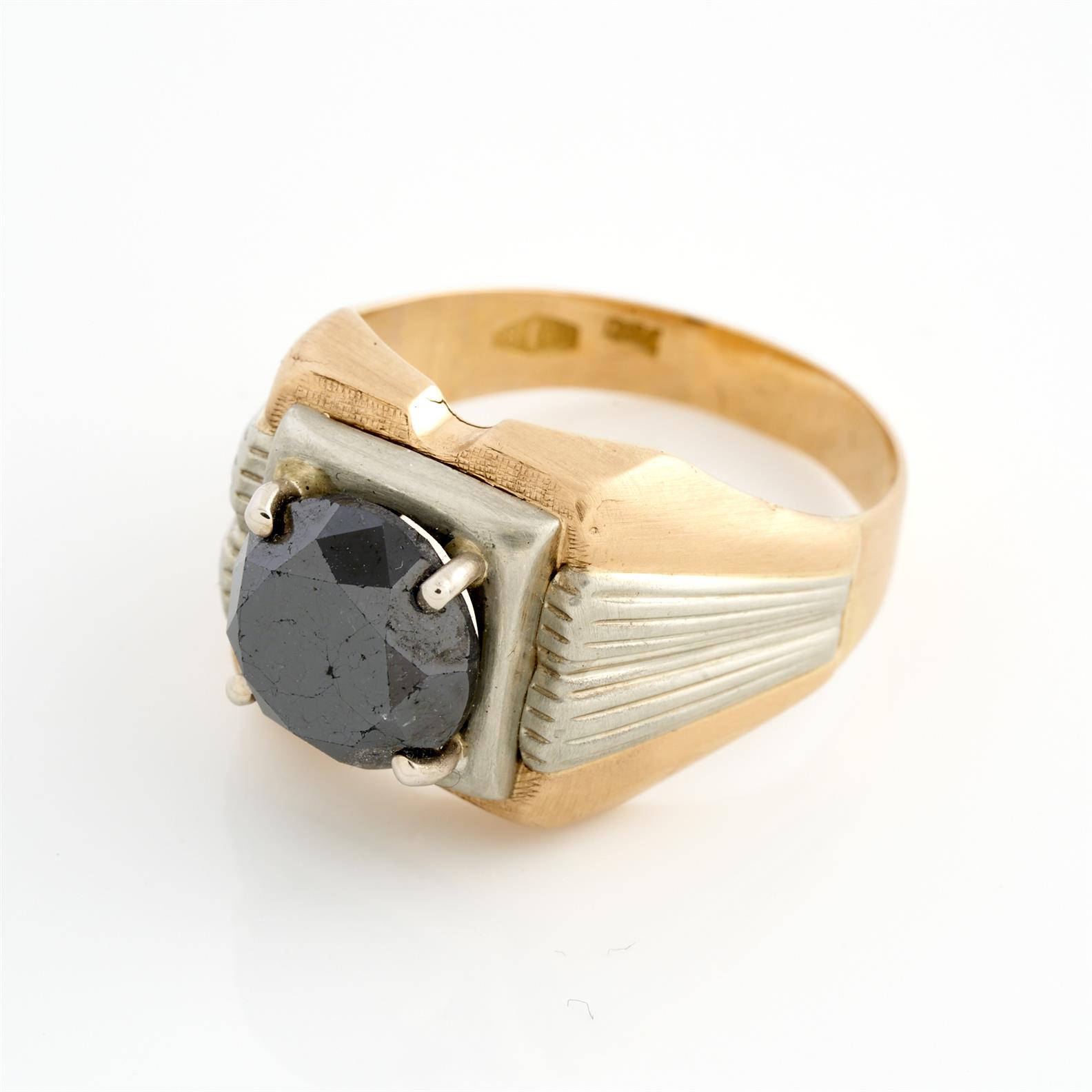 A BLACK DIAMOND SIGNET RING IN 18CT GOLD, SIZE W1/2, 7.8GMS