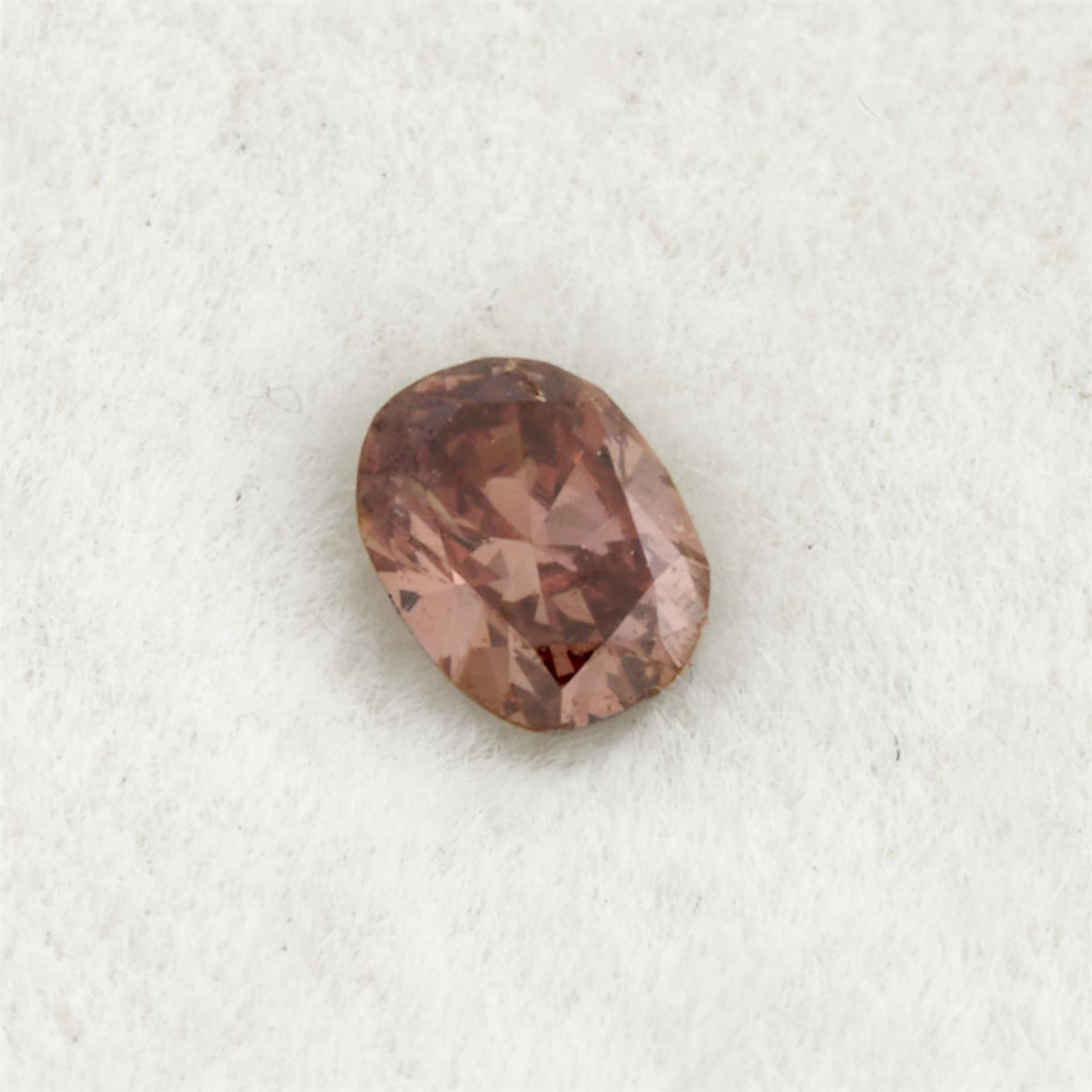AN UNMOUNTED BROWNISH PINK DIAMOND WEIGHING 0.06CTS, ACCOMPANIED BY A VALUATION