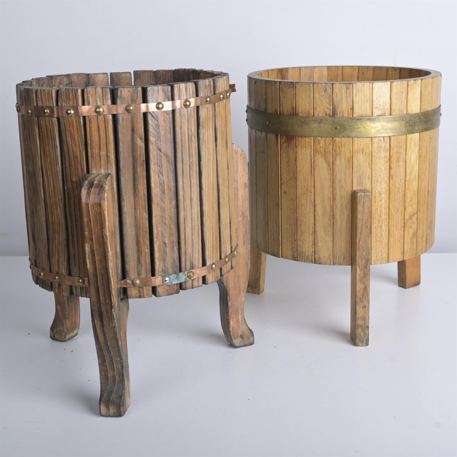 TWO BARRELL PLANTERS (42H X 32DIA CM)