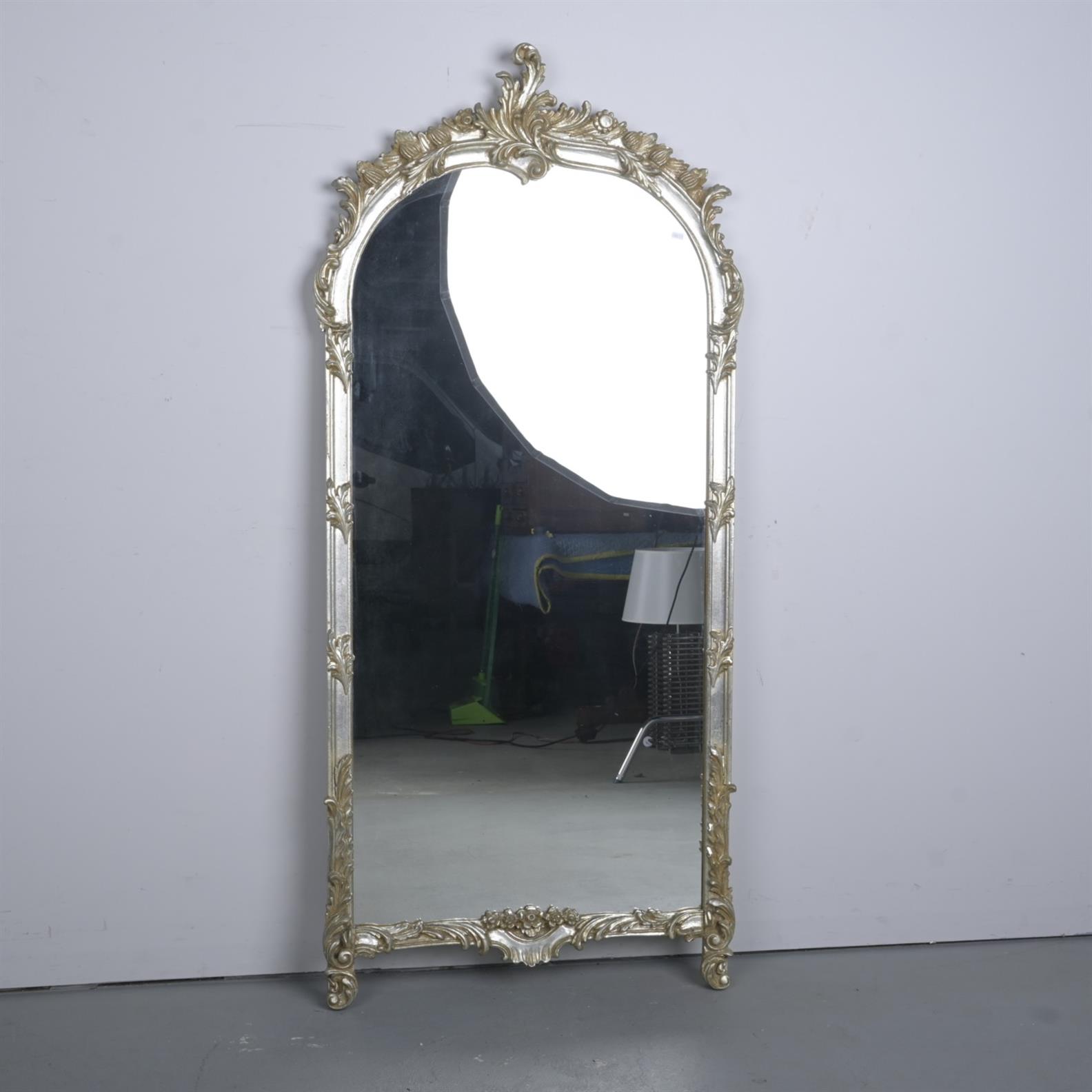A TALL GILT OVERMANTLE MIRROR - SIGNS OF REPAIR (A/F) (166H X 76W CM)