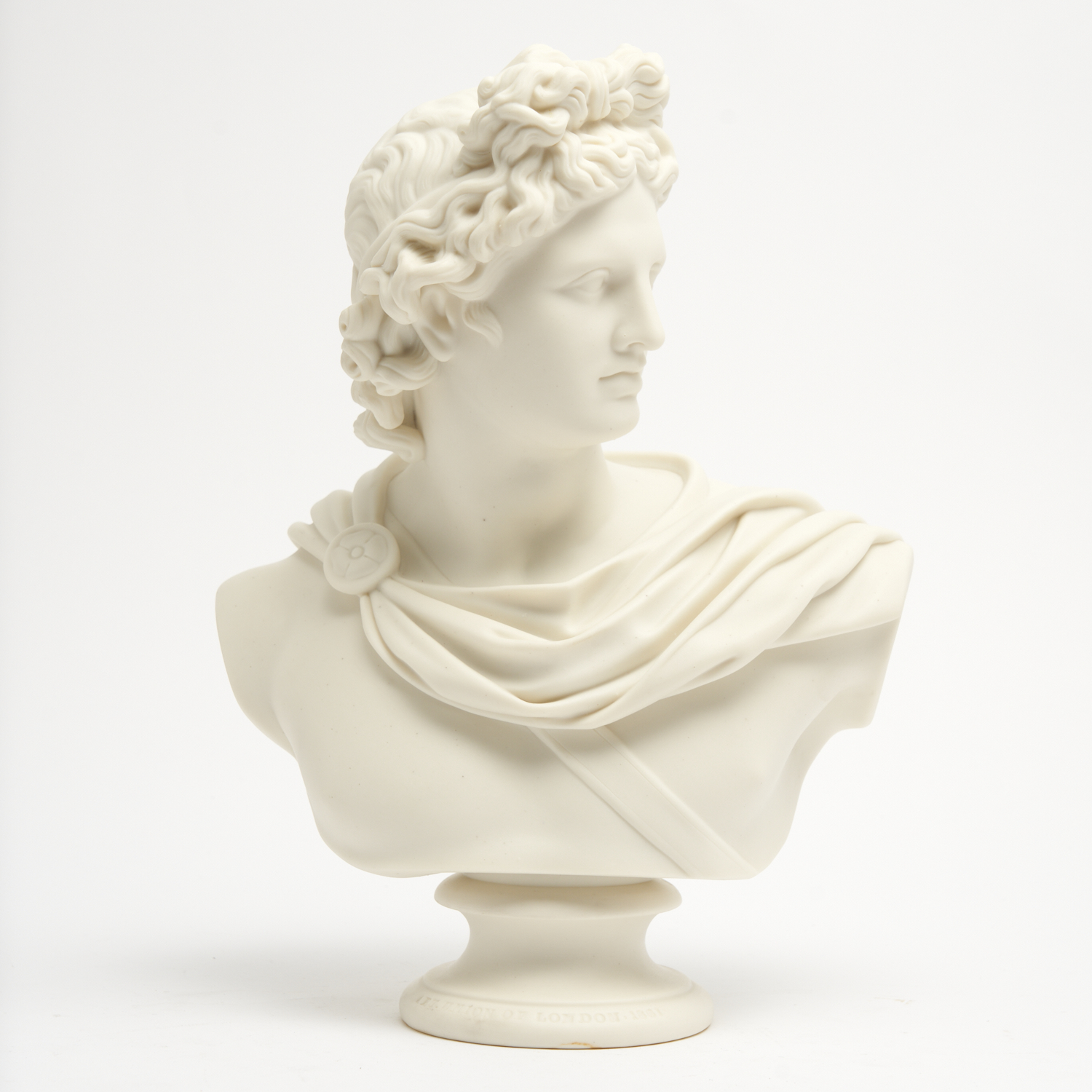 A PARIAN BUST OF APOLLO 1861 MARKED C. DELPECH AND MADE BY W & T COPELAND FOR THE ART UNION OF LONDON 1861 H.34CM