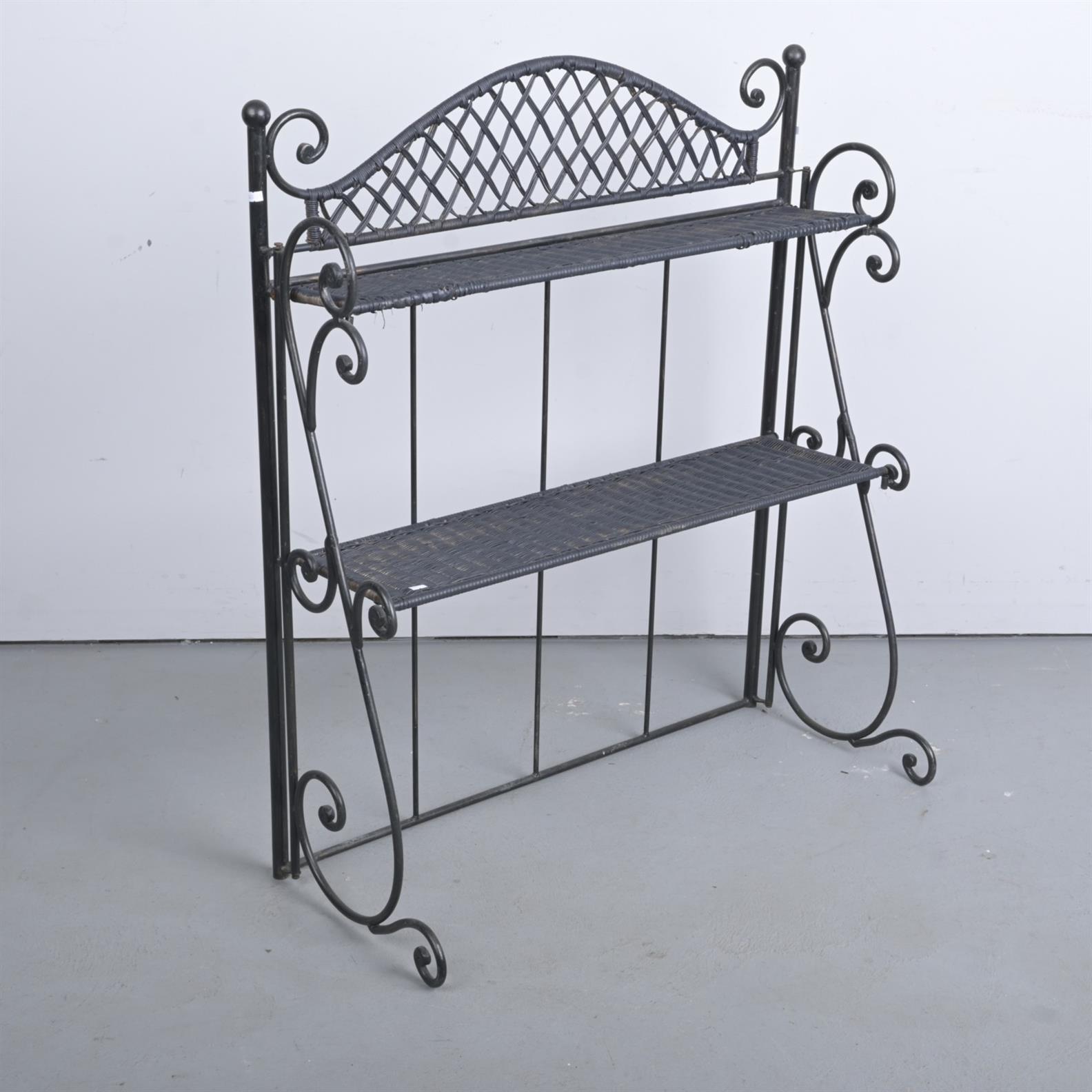 A WROUGHT ALLOY BLACK SHELF (107H X 94W X 40D CM)