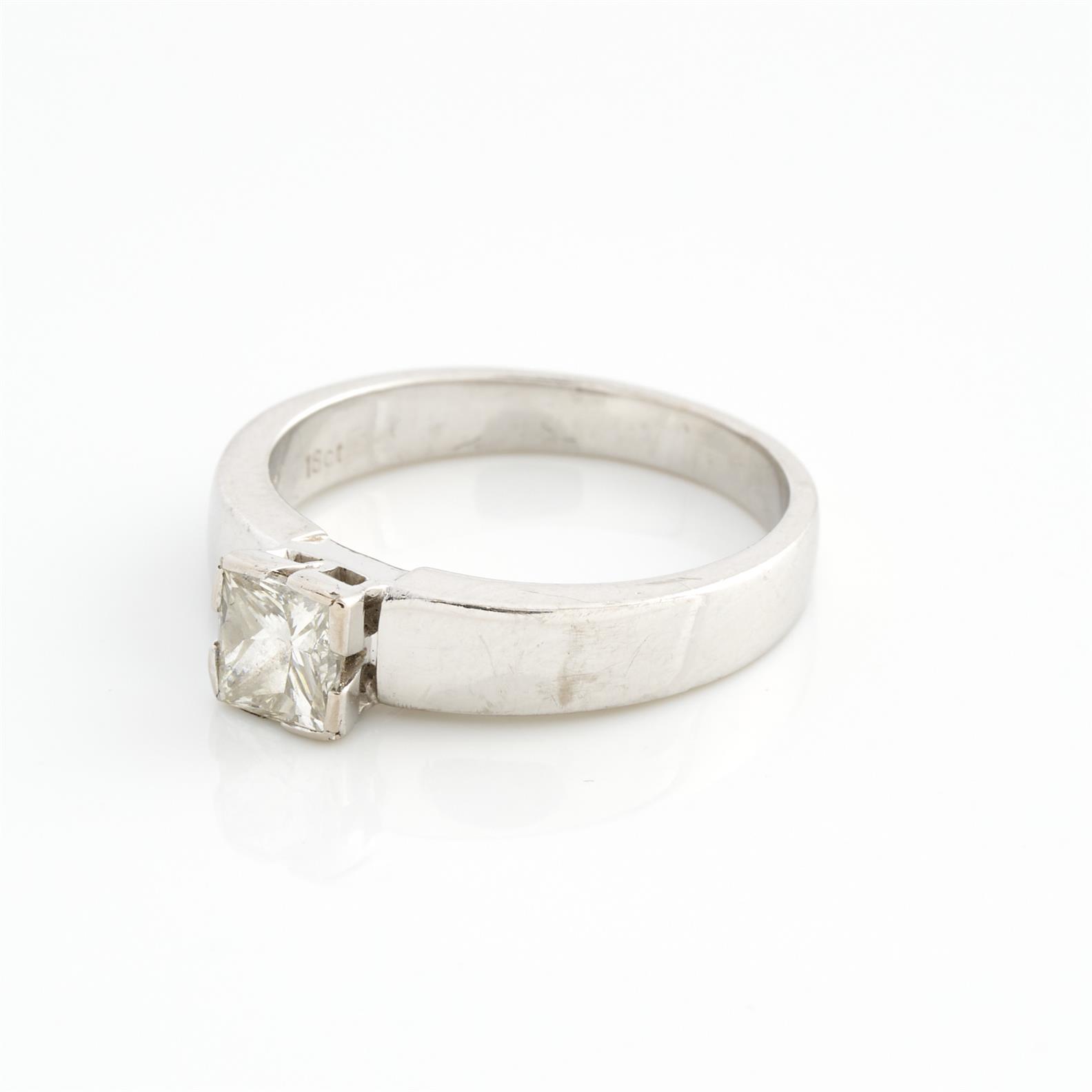A DIAMOND RING IN 18CT WHITE GOLD, THE DIAMOND WEIGHING APPROXIMATELY 0.72CTS (G, VS2), SIZE M, ACCOMPANIED BY A BOX