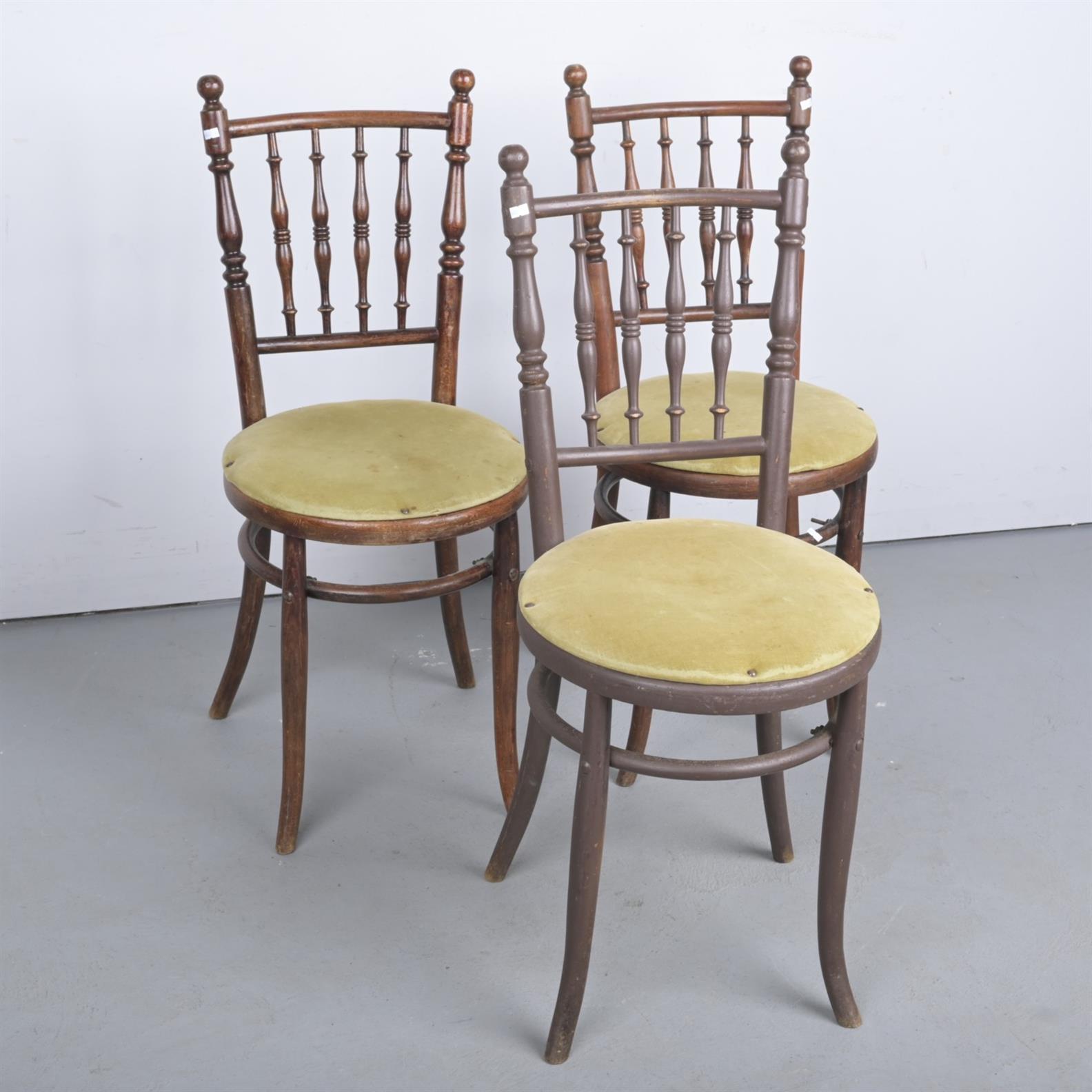 A SET OF THREE LATE 19th CENTURY STAINED BEECH SPINDLE-BACK SIDE CHAIRS (A/F) (H95 W37 D42 CM)