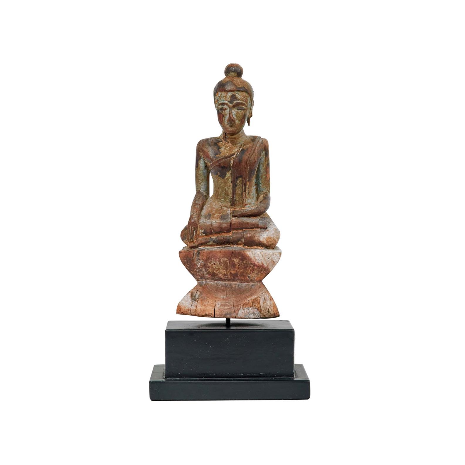 A THAI AYUTTHAYA CARVED TEAK BUDDHA