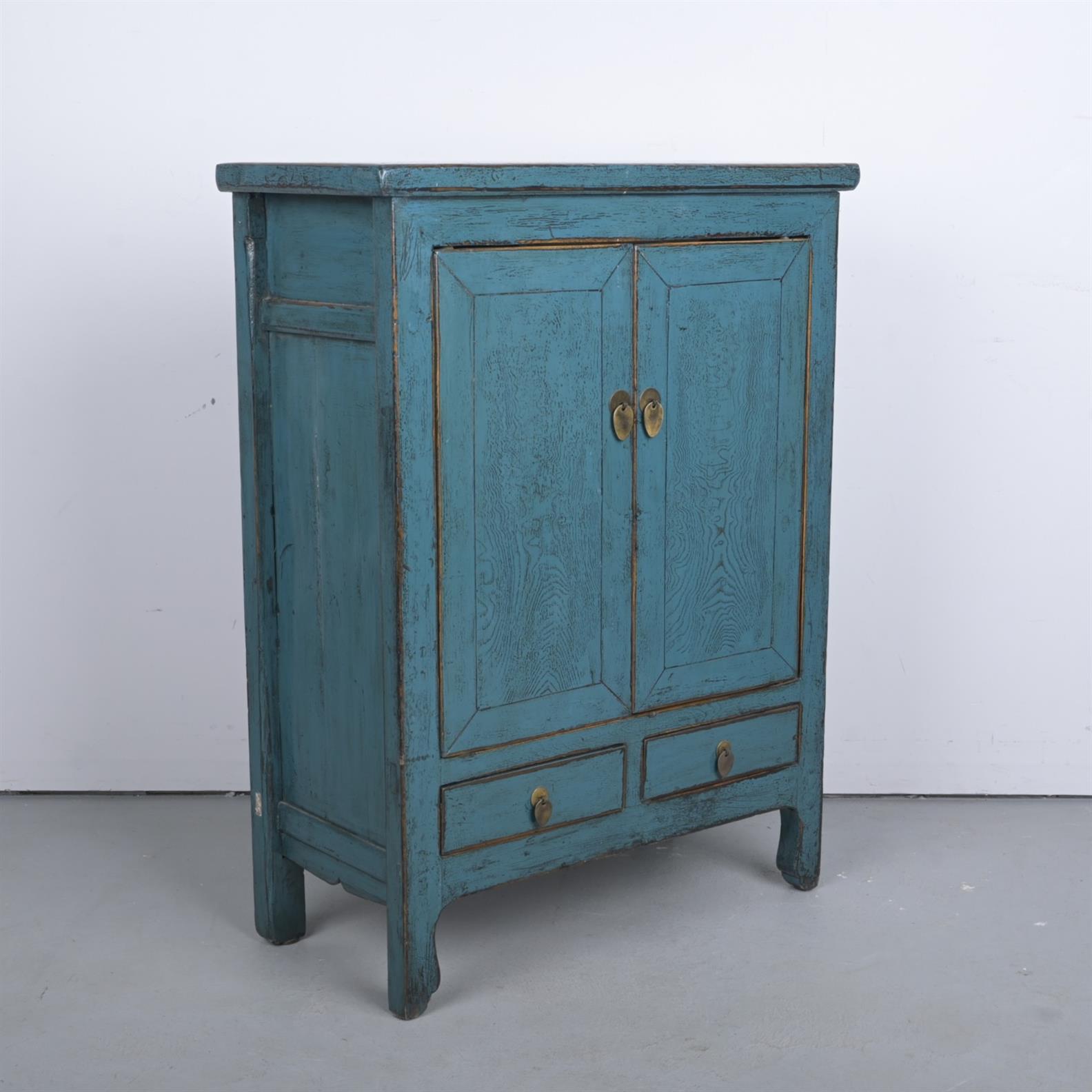 A TEAL CHINESE CABINET (A/F) (H114 W87 D41 CM)