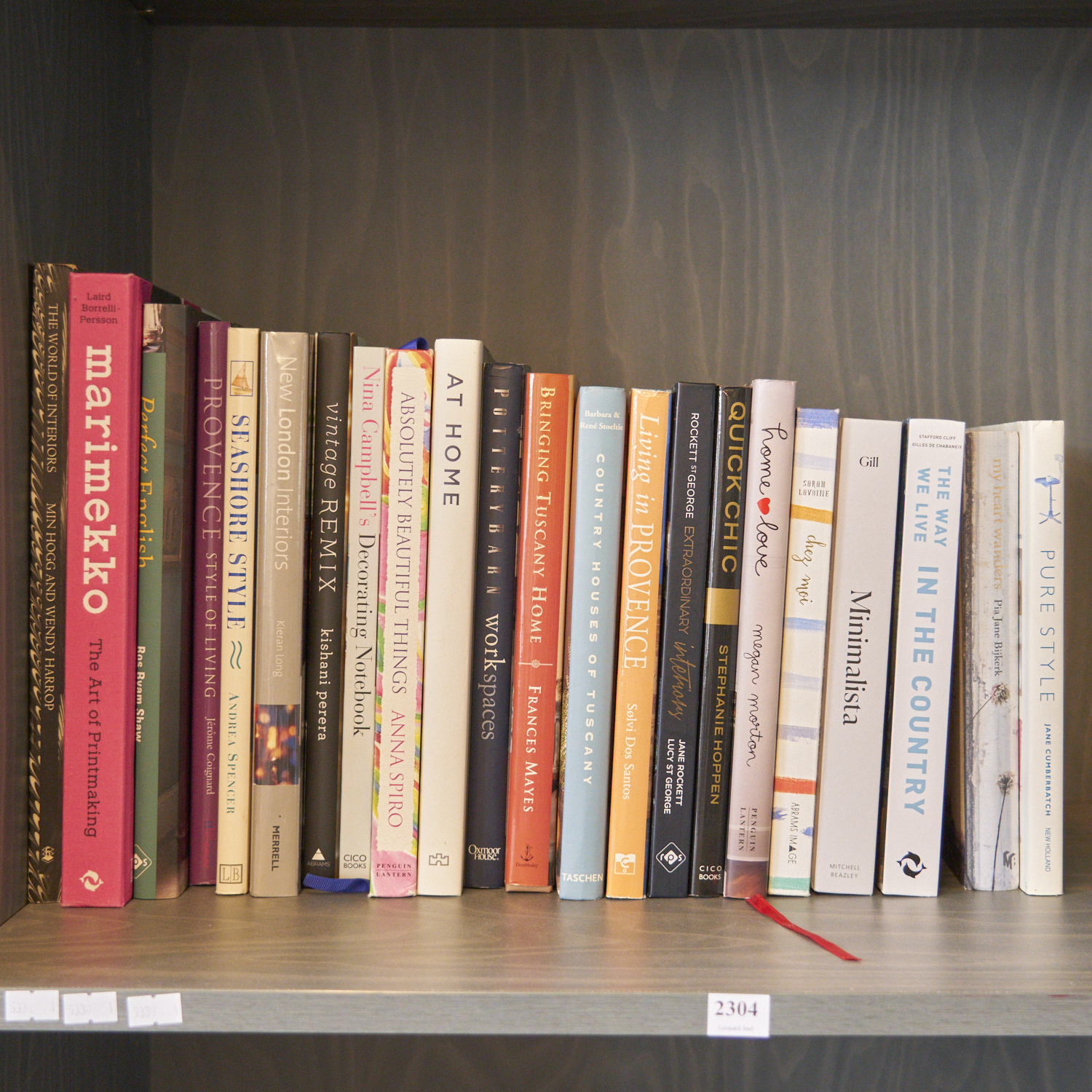 A SHELF OF BOOKS ON INTERIOR DESIGN AND STYLE