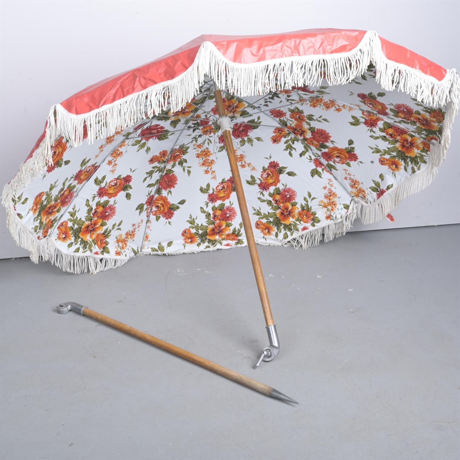 A FLOWER DECORATED FOLDING SUN UMBRELLA (A/F) (178 DIA CM)