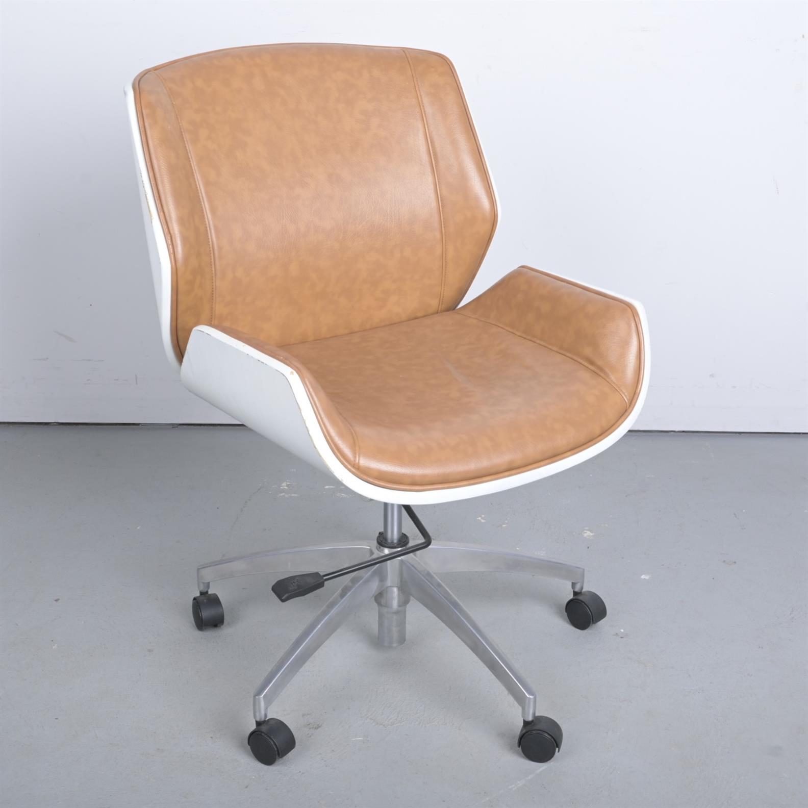 A 1980s LEYLEK ERGONOMIC STUDIO OFFICE EXECUTIVE CHAIR WITH LEATHER UPHOLSTERY (A/F) (90H 58W 68D CM)