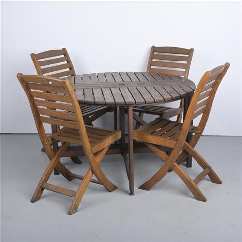A TEAK FOLDING FIVE PIECE OUTDOOR SETTING ( 70H 112D CM )