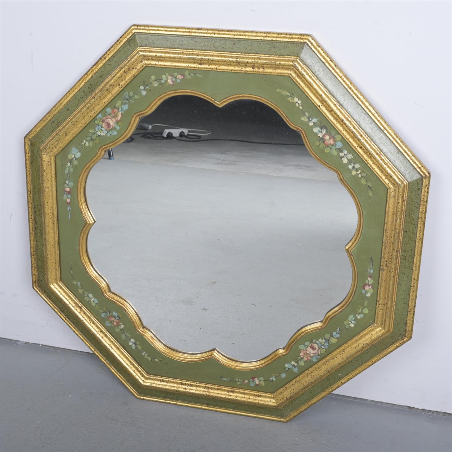 AN ITALIAN GILTWOOD FLORENTINE OCTAGONAL SCALLOPED MIRROR (80H X 75W CM)