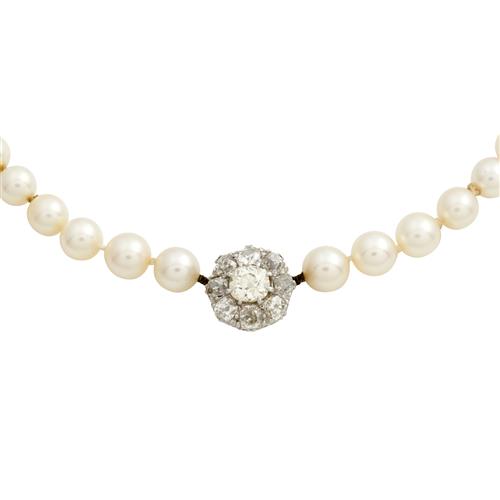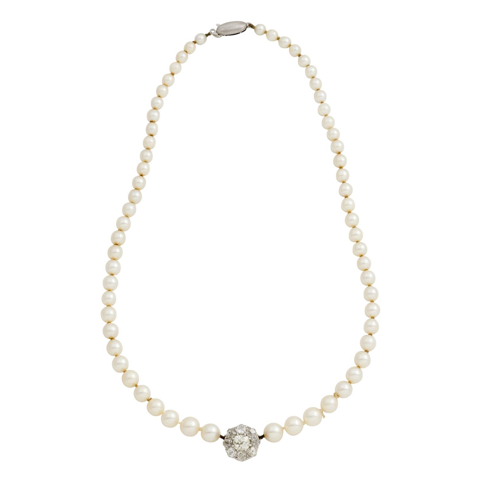CULTURED PEARL AND DIAMOND NECKLACE