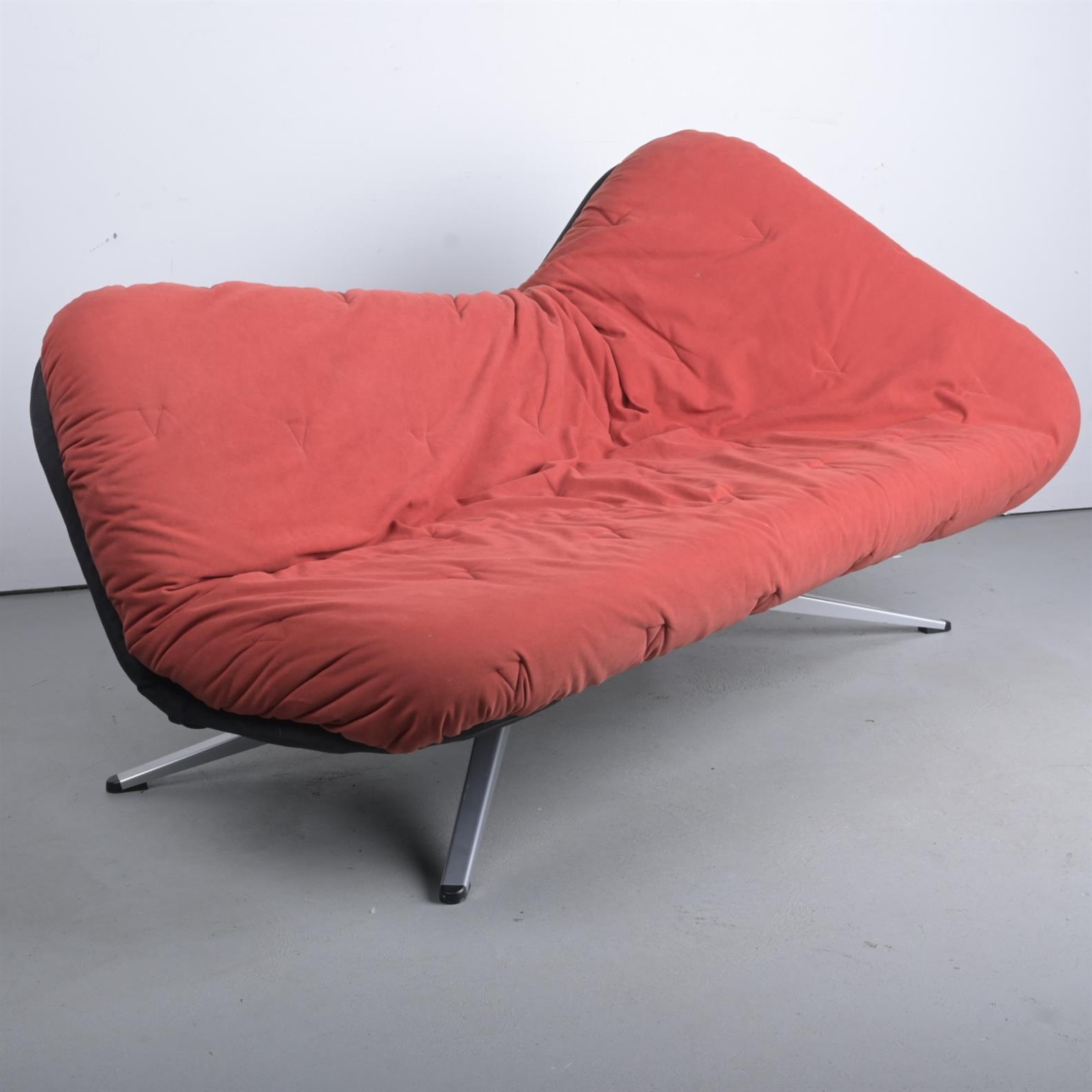 A RED UPHOLSTERED SOFA BED BY FABRIZIO BALLARDINI & FULVIO FORBICINI / RIBALTA FOR ARFLEX (92H X 180W X 90D CM) (THIS ITEM MUST BE REMOVED BY CARRIERS AT THE CUSTOMER'S EXPENSE. LEONARD JOEL STAFF CANNOT ASSIST CARRYING THIS ITEM.)