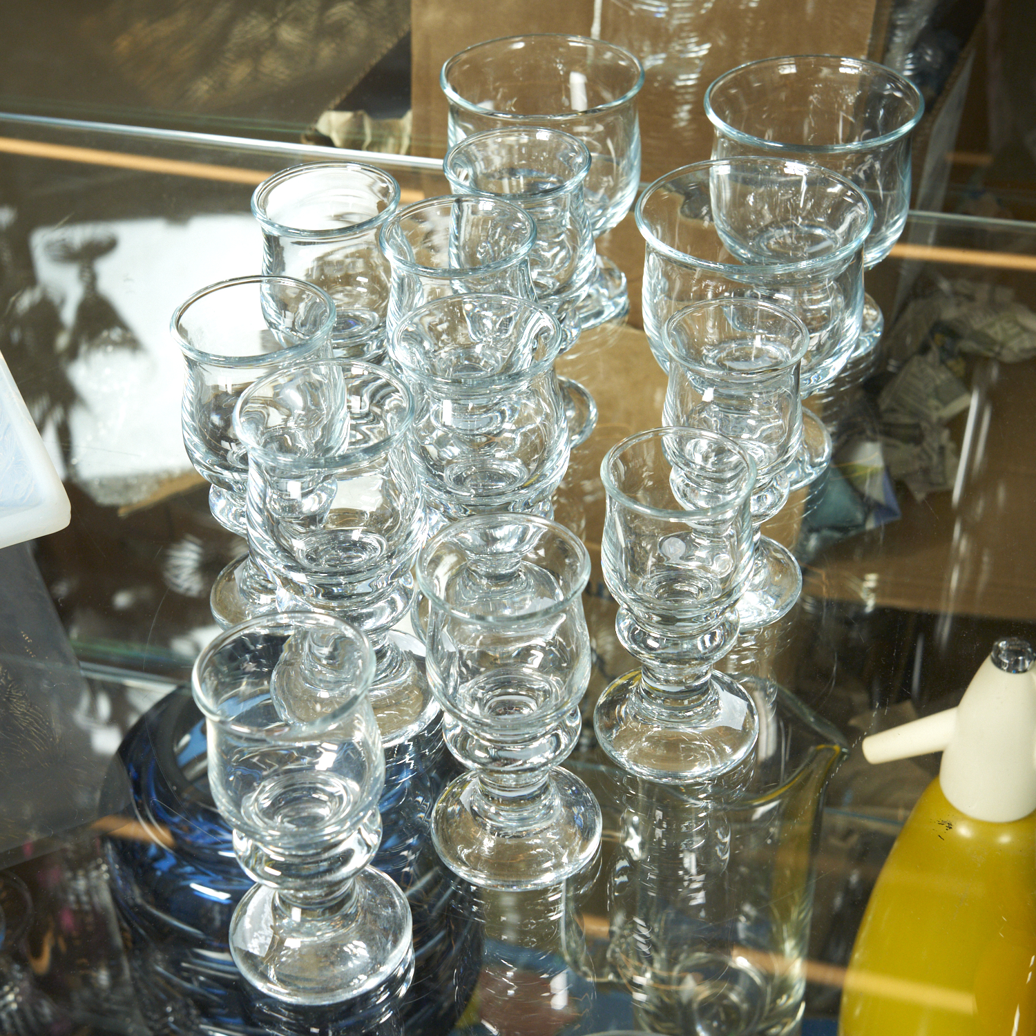 HOLMEGAARD 'TIVOLI' PORT, SCHNAPPS, AND WHISKEY GLASSES BY PER LÜTKEN, MADE IN DENMARK H.11CM (TALLEST)
