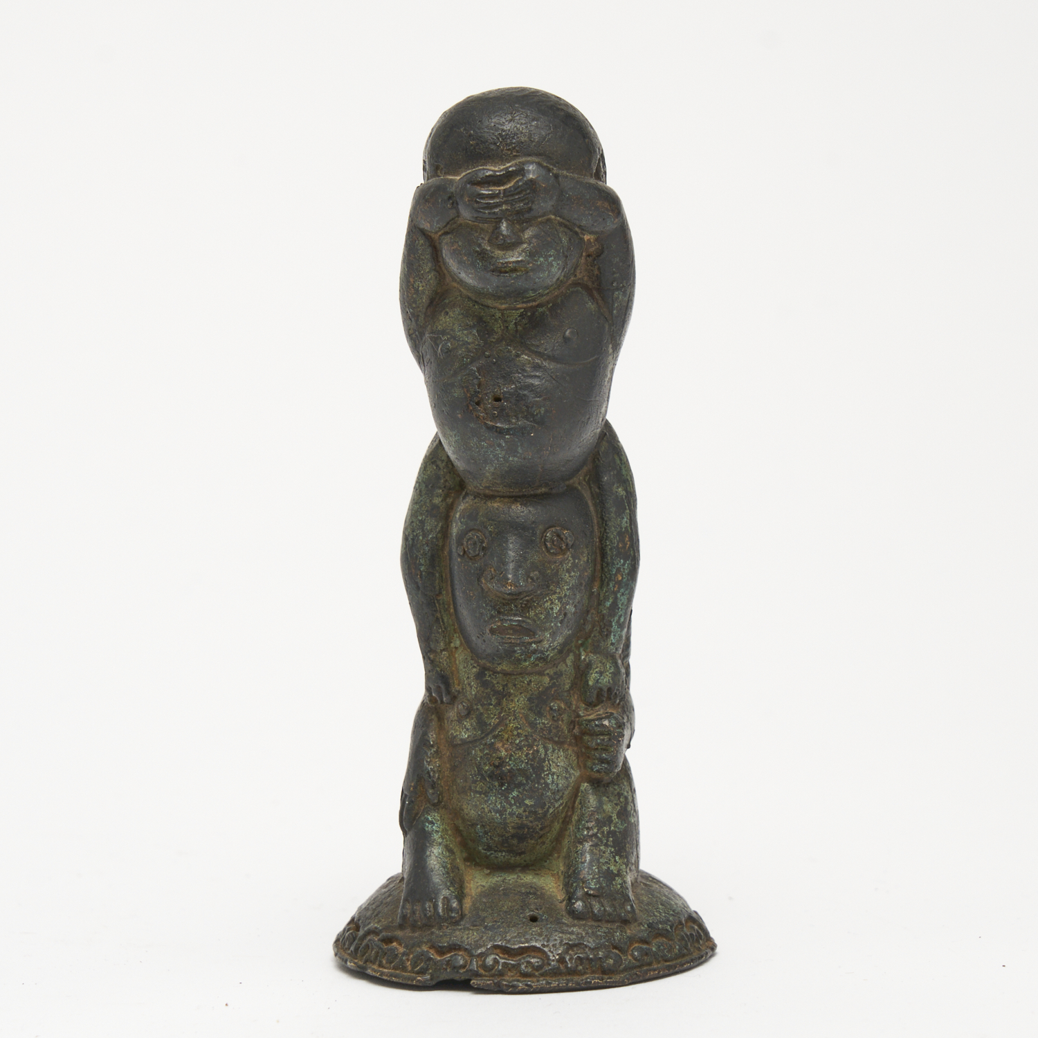 AN UNUSUAL ANTIQUE FIGURAL BRONZE H.13CM