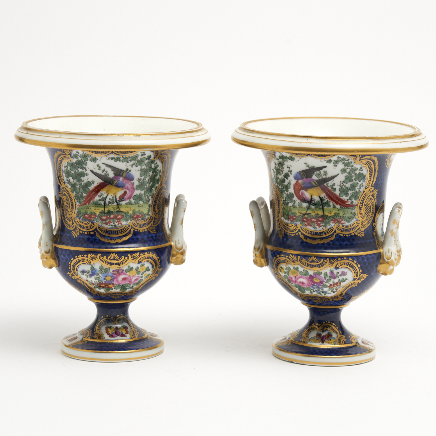 A PAIR OF DERBY GOLD ANCHOR PORCELAIN URNS H.19CM