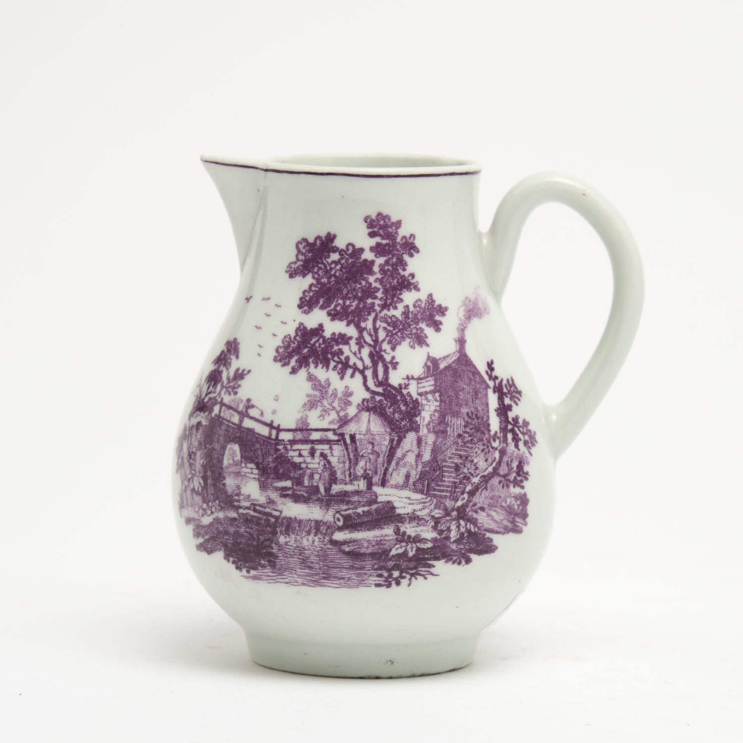 A SMALL WORCESTER 1ST PERIOD JUG WITH TRANSFER PRINT, 18TH CENTURY H.10CM