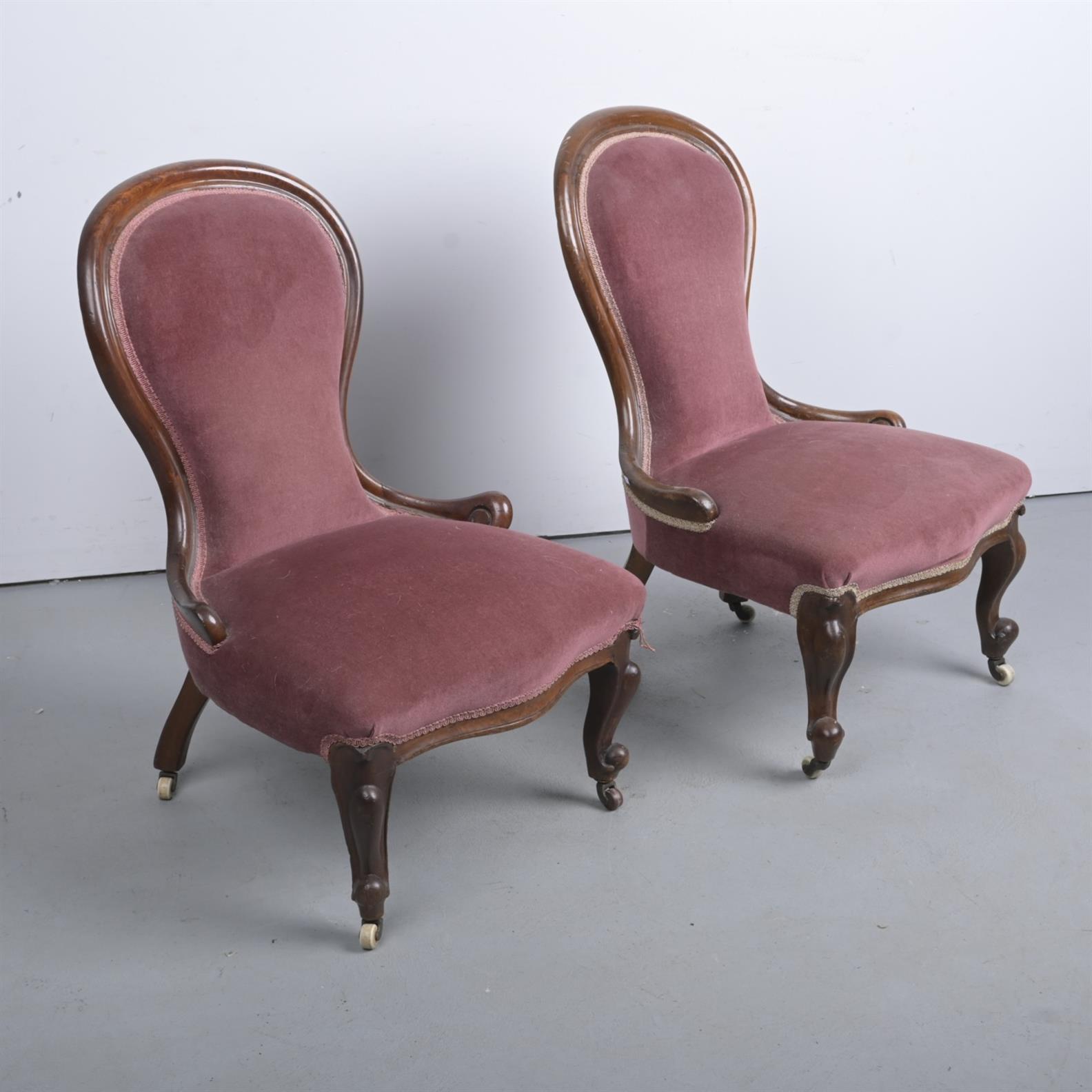 A PAIR OF VICTORIAN LADIES CHAIRS (A/F) (95H X 60W X 59D CM)