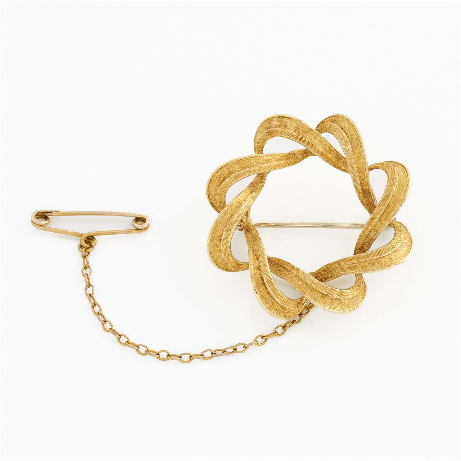 A VINTAGE ITALIAN BROOCH IN 18CT GOLD, DIAMETER 32MM, 7.9GMS