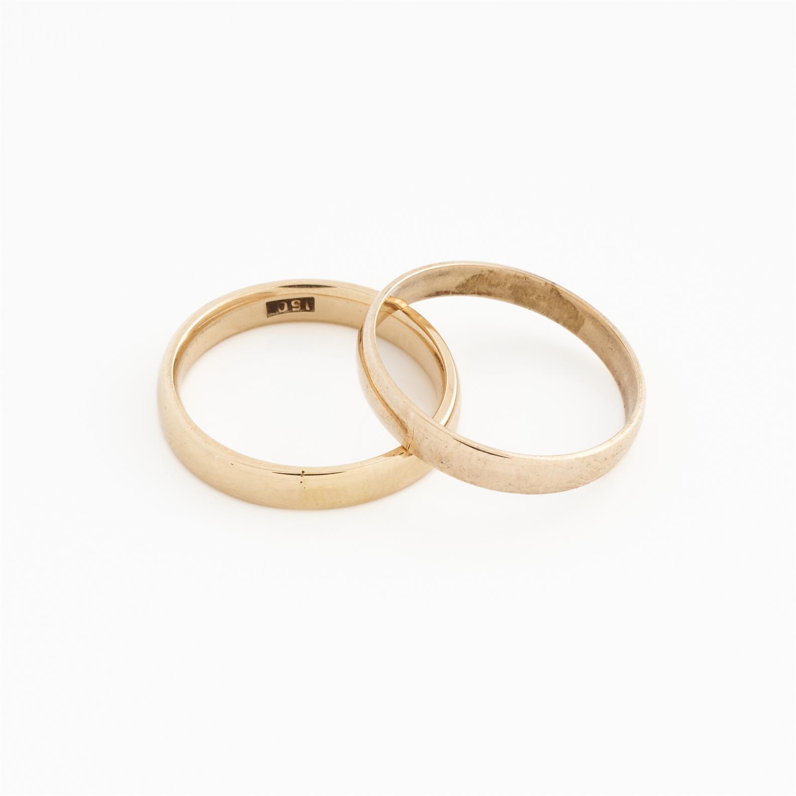 WILLIS & SONS, A WEDDER IN 9CT GOLD, SIZE Q, TOGETHER WITH AN ANTIQUE WEDDER IN 15CT GOLD, SIZE O, 5.4GMS