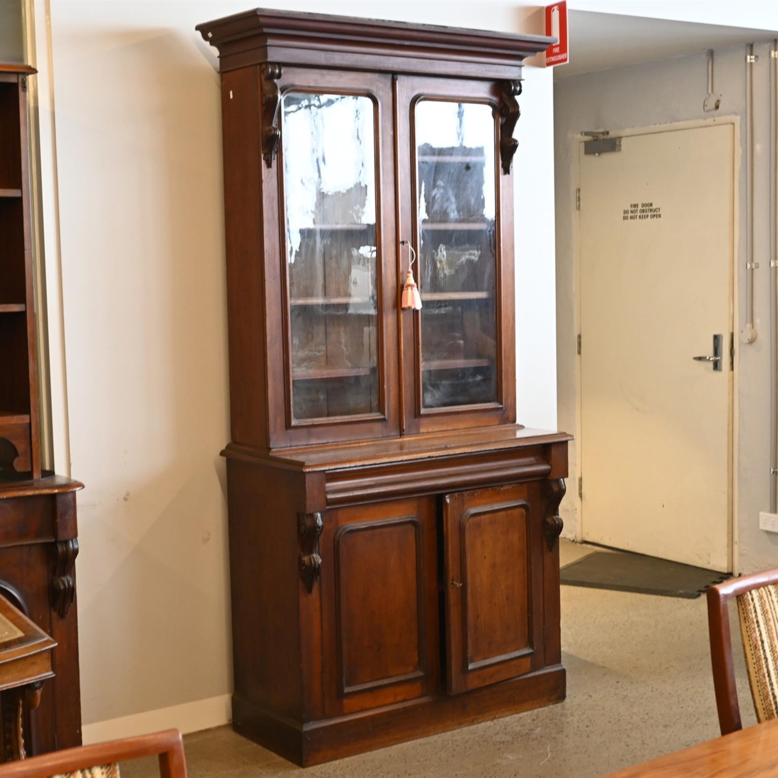 A VICTORIAN BOOKCASE CABINET (A/F) (222H X 113W X 50D CM) (THIS ITEM MUST BE REMOVED BY CARRIERS AT THE CUSTOMER'S EXPENSE. LEONARD JOEL STAFF CANNOT ASSIST CARRYING THIS ITEM.)
