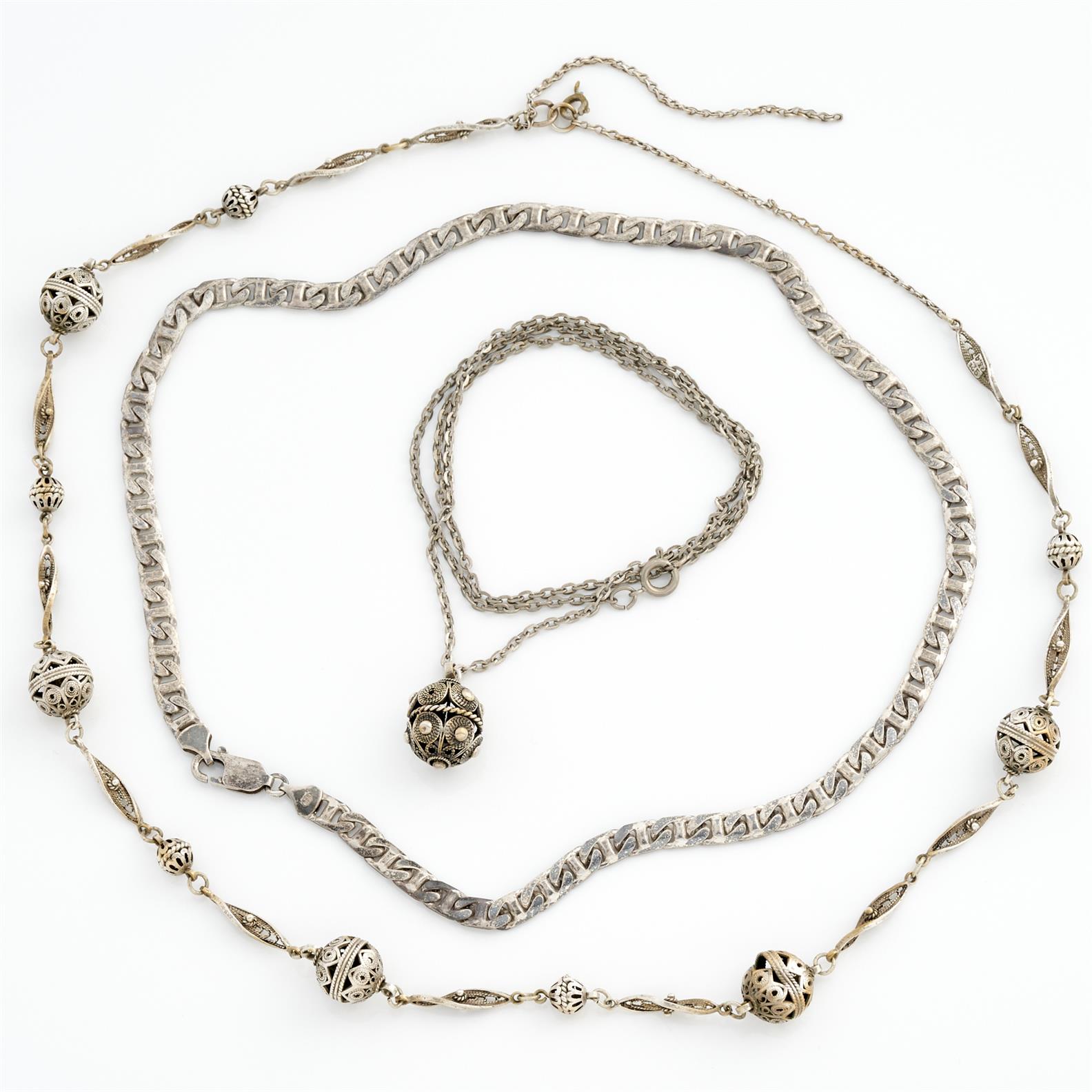 A COLLECTION OF THREE SILVER NECKLACES, 480MM, 590MM, 580MM