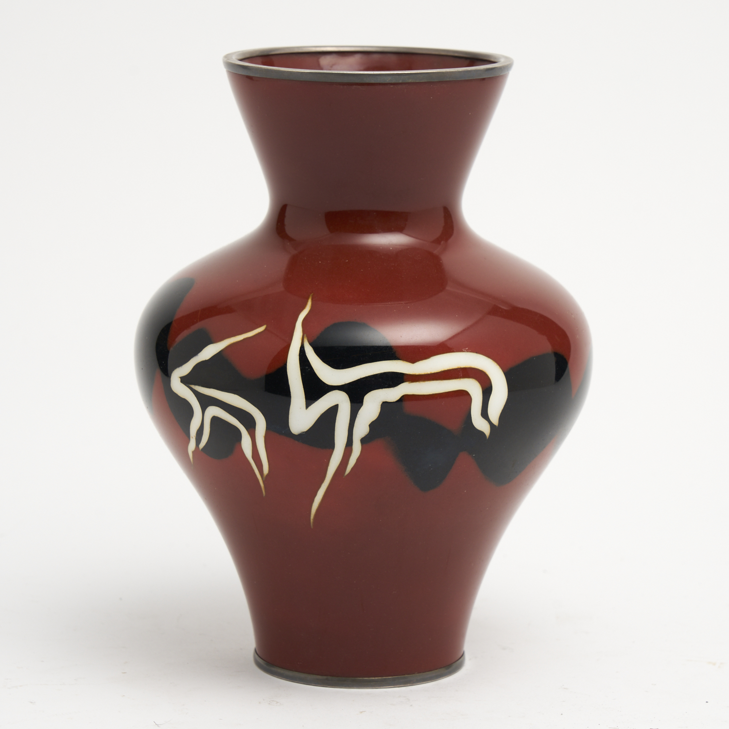 AN ANDO CLOISONNE VASE WITH STYLISED DESIGN H.24CM