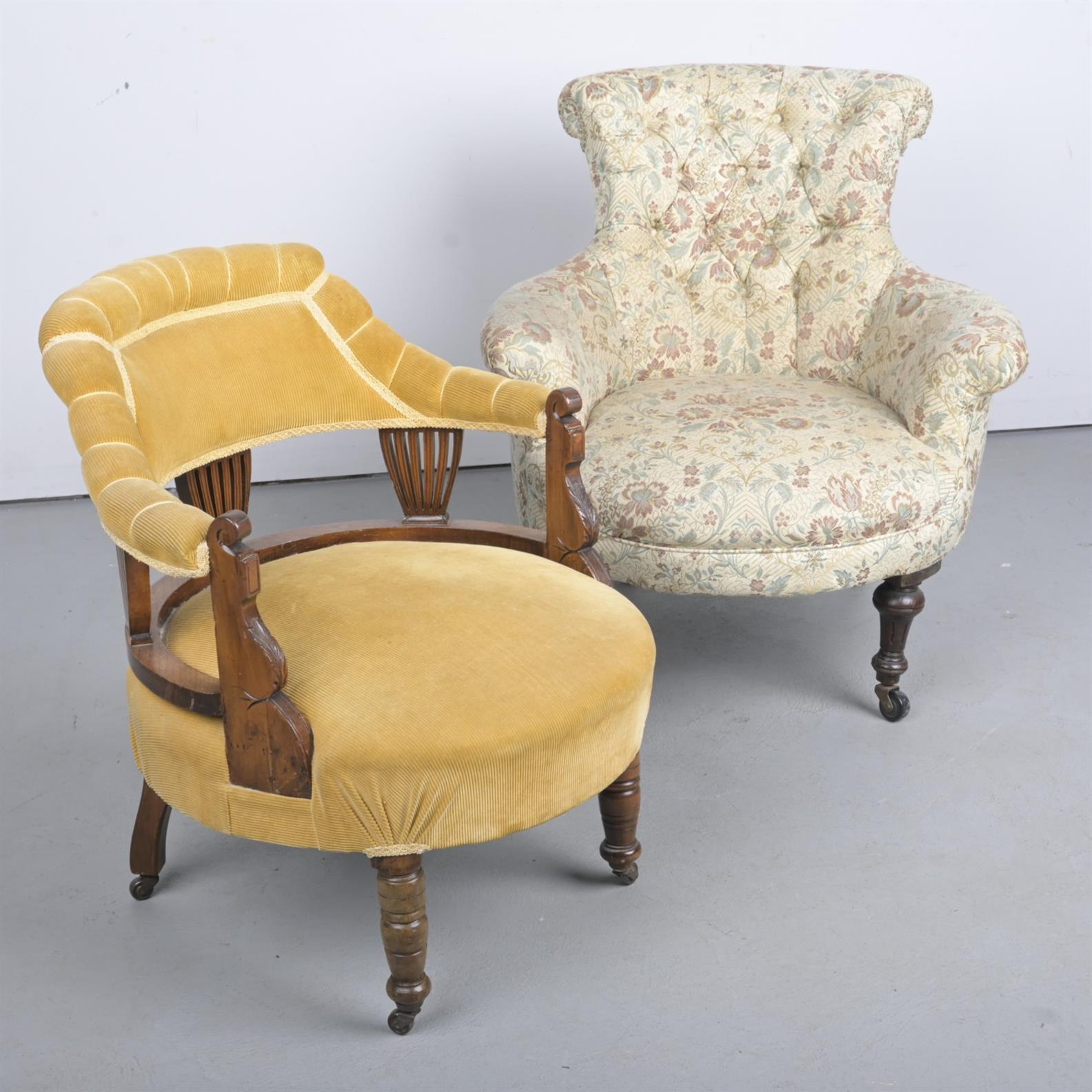 TWO EDWARDIAN TUB CHAIRS (77H X 75W X 85D CM)