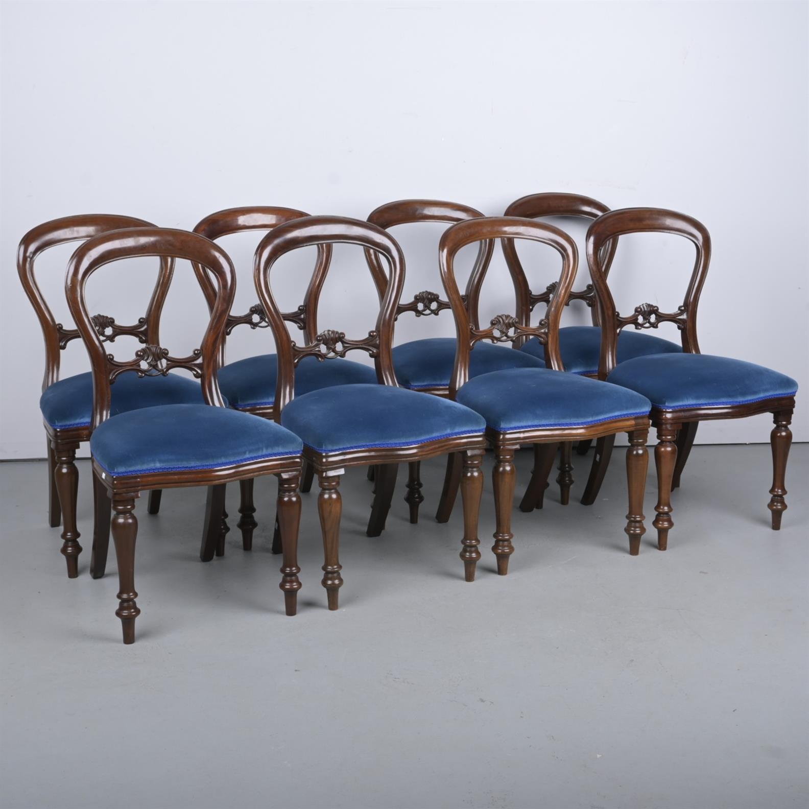 A SET OF EIGHT VICTORIAN DINING CHAIRS (93H X 50W X 56D CM)