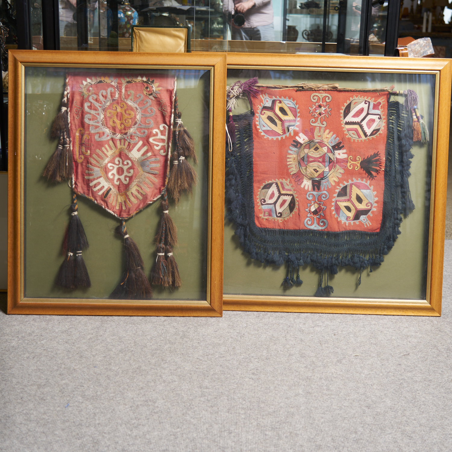TWO FRAMED AFGHANI SADDLE BAGS 87 X 86CM (LARGEST)