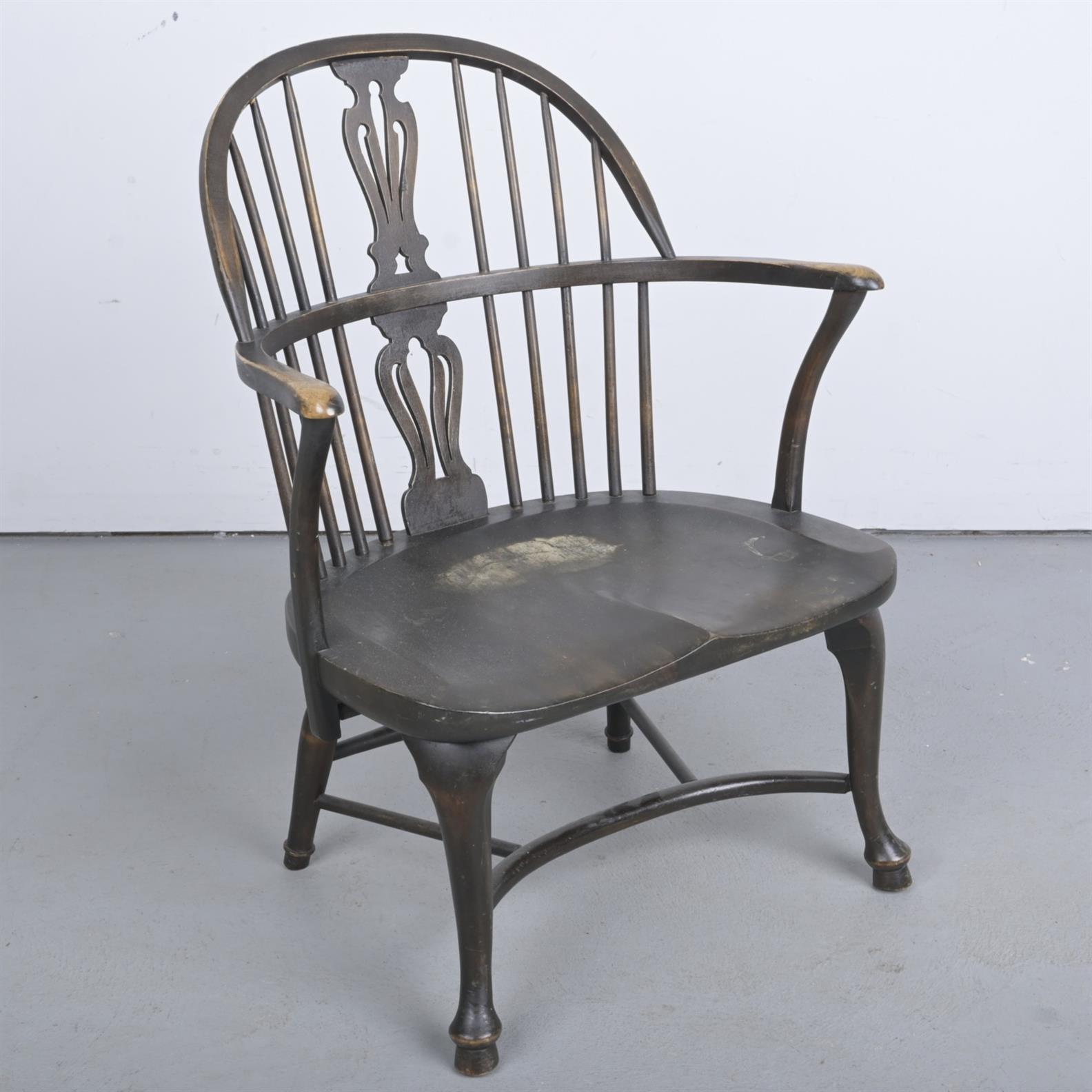 A 20th CENTURY OAK WINDSOR CHAIR (A/F) (80H X 63W X 45D MCM)