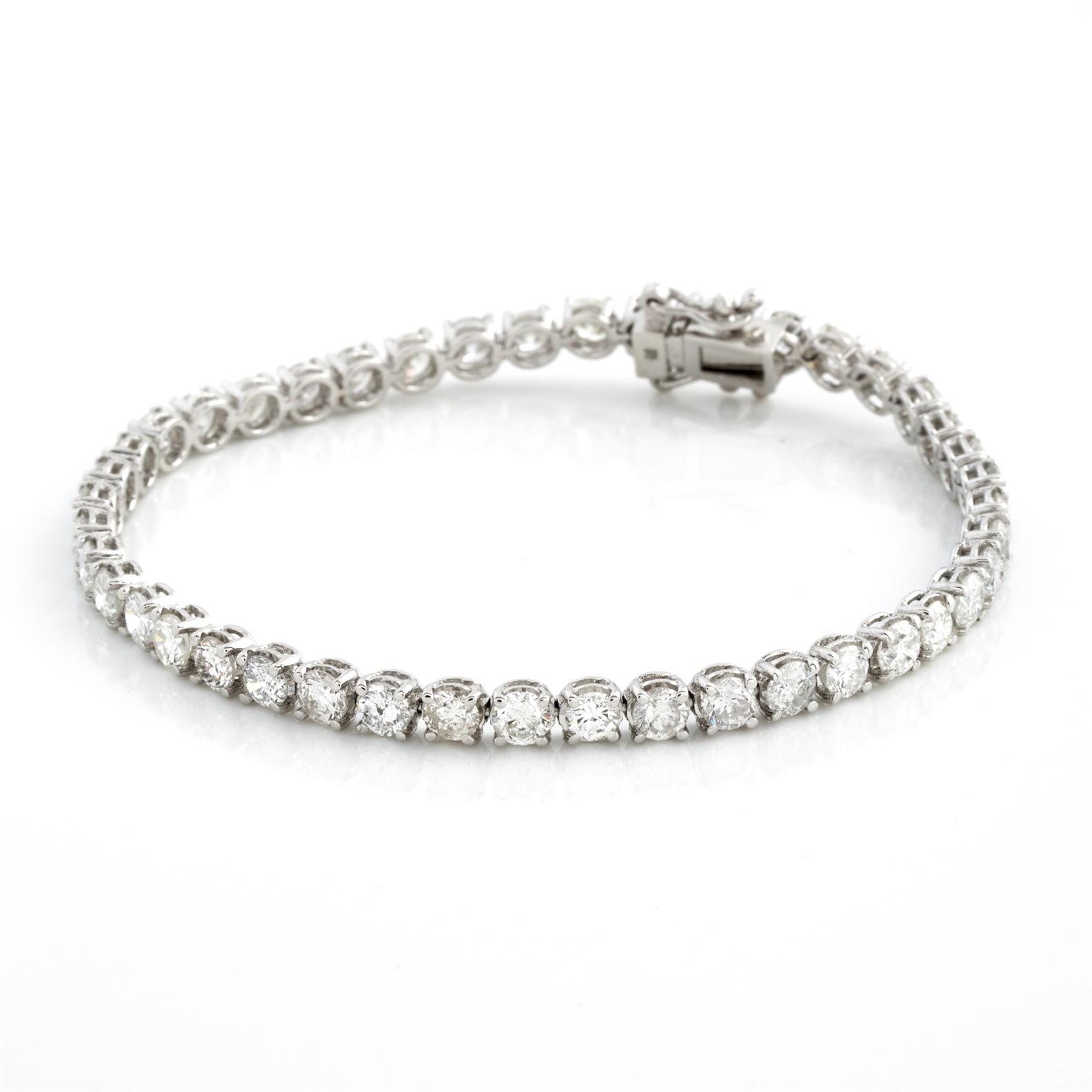 A DIAMOND LINE BRACELET IN 18CT WHITE GOLD, THE DIAMOND APPROXIMATELY 10.0CTS, 11.3GMS, 190MM, ACCOMPANIED BY A VALUATION
