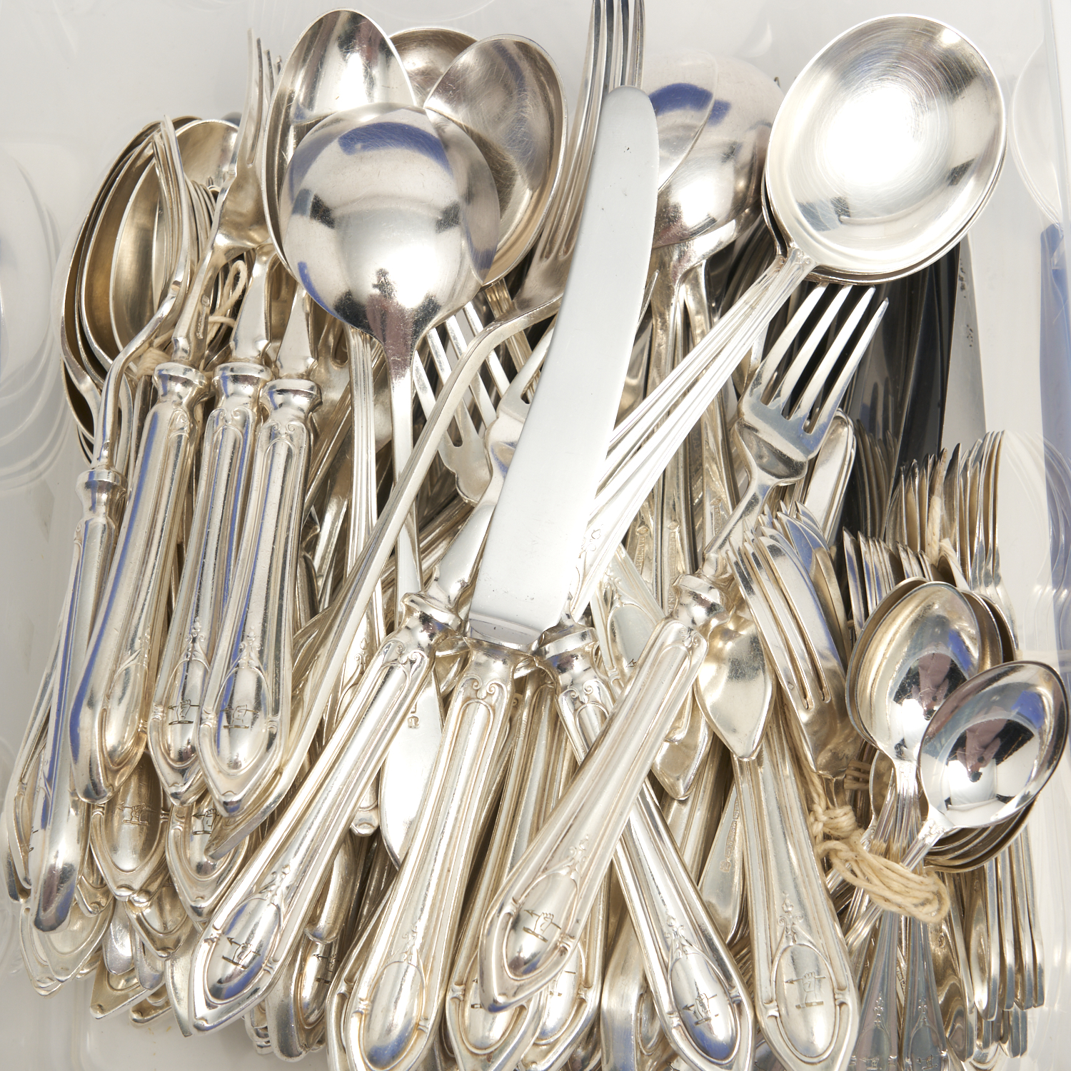 A SET OF MAPPIN & WEBB SILVER PLATE CUTLERY L.21CM (LONGEST)