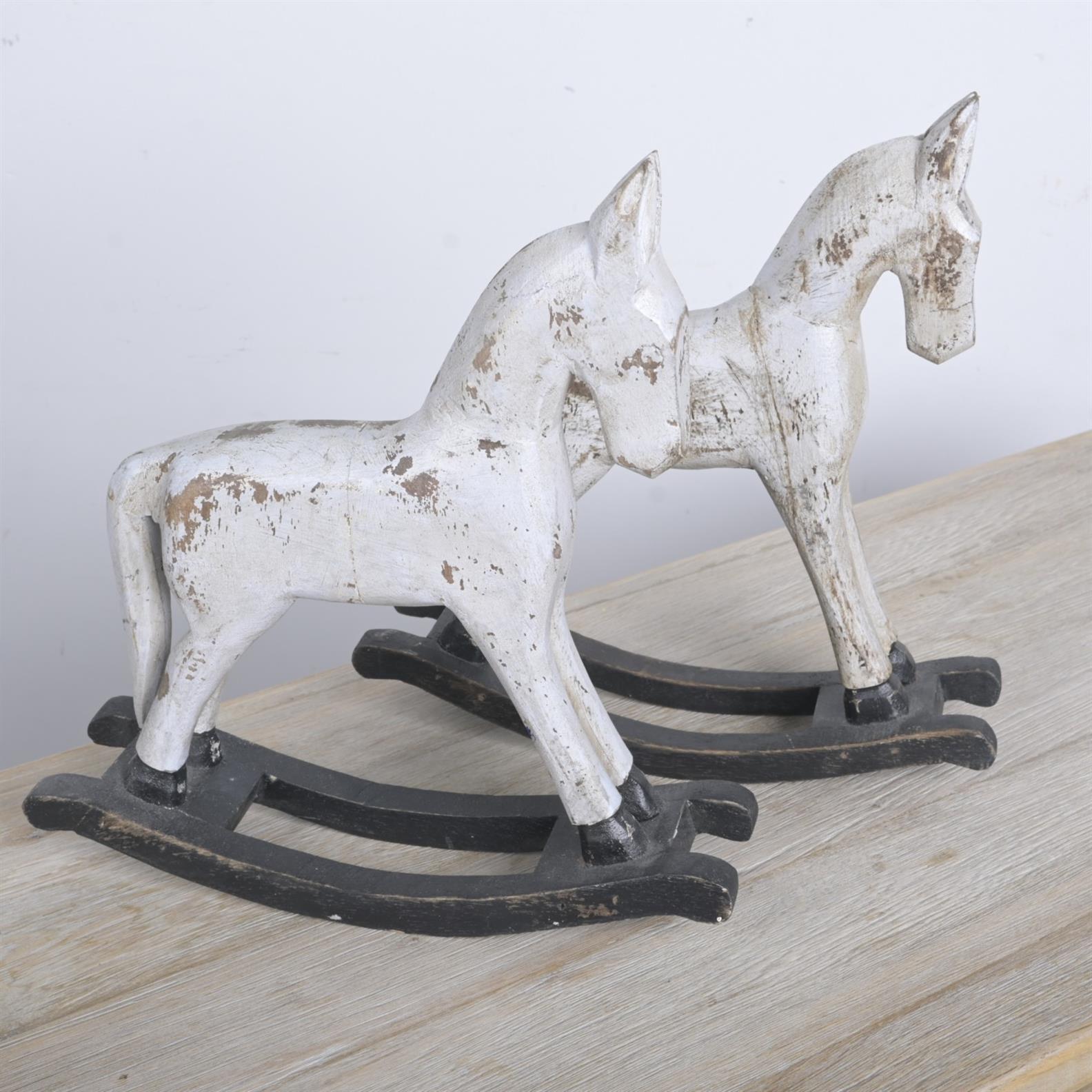 A PAIR OF SMALL ORNAMENTAL ROCKING HORSES (28H CM)