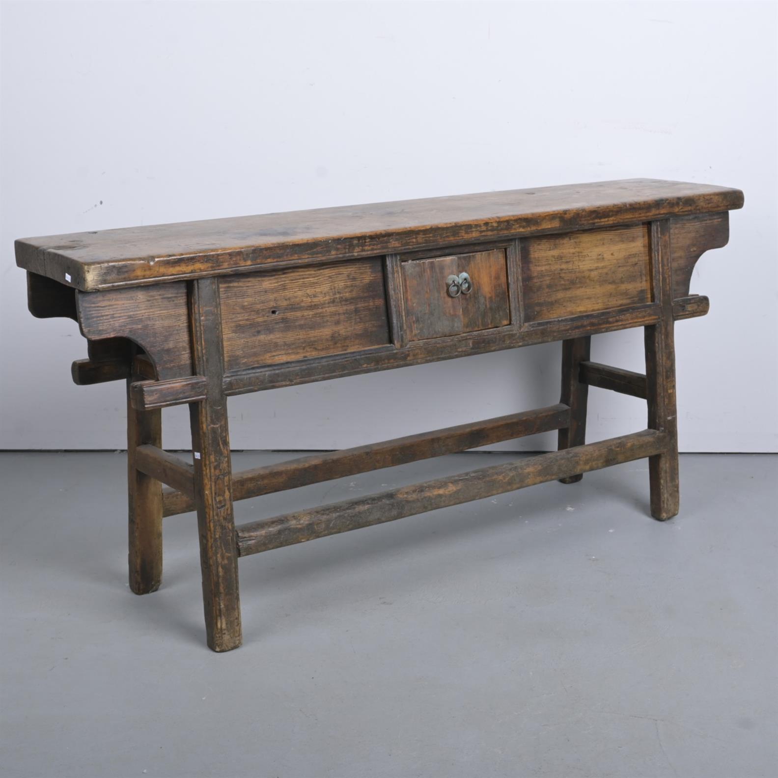 A CHINESE ELM SIDE TABLE (81H X 177W X 37D CM)