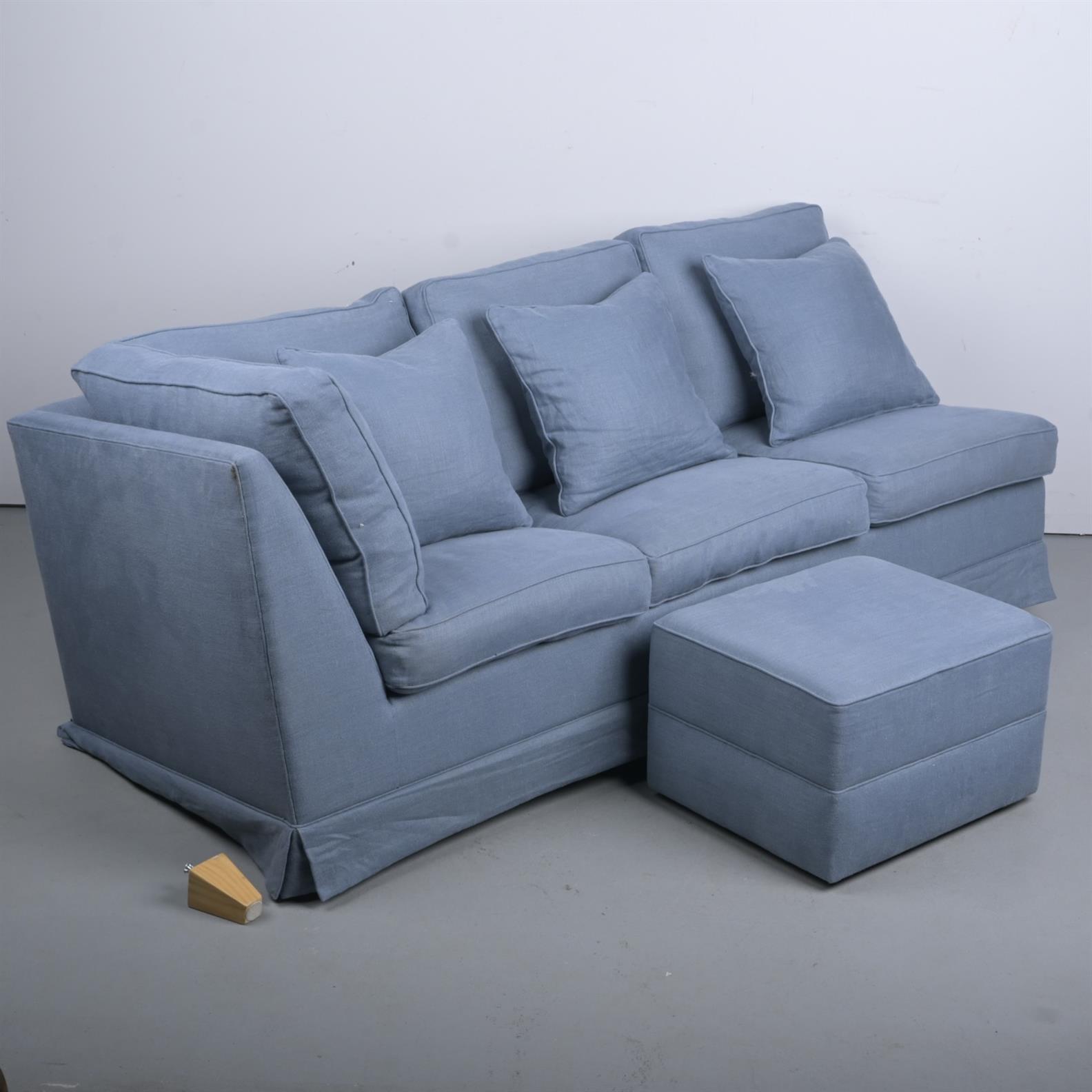 A FEATHER DOWN LINEN UPHOLSTERED SOFA WITH MATCHING OTTOMAN (A/F) (95H X 211W X 94D CM)