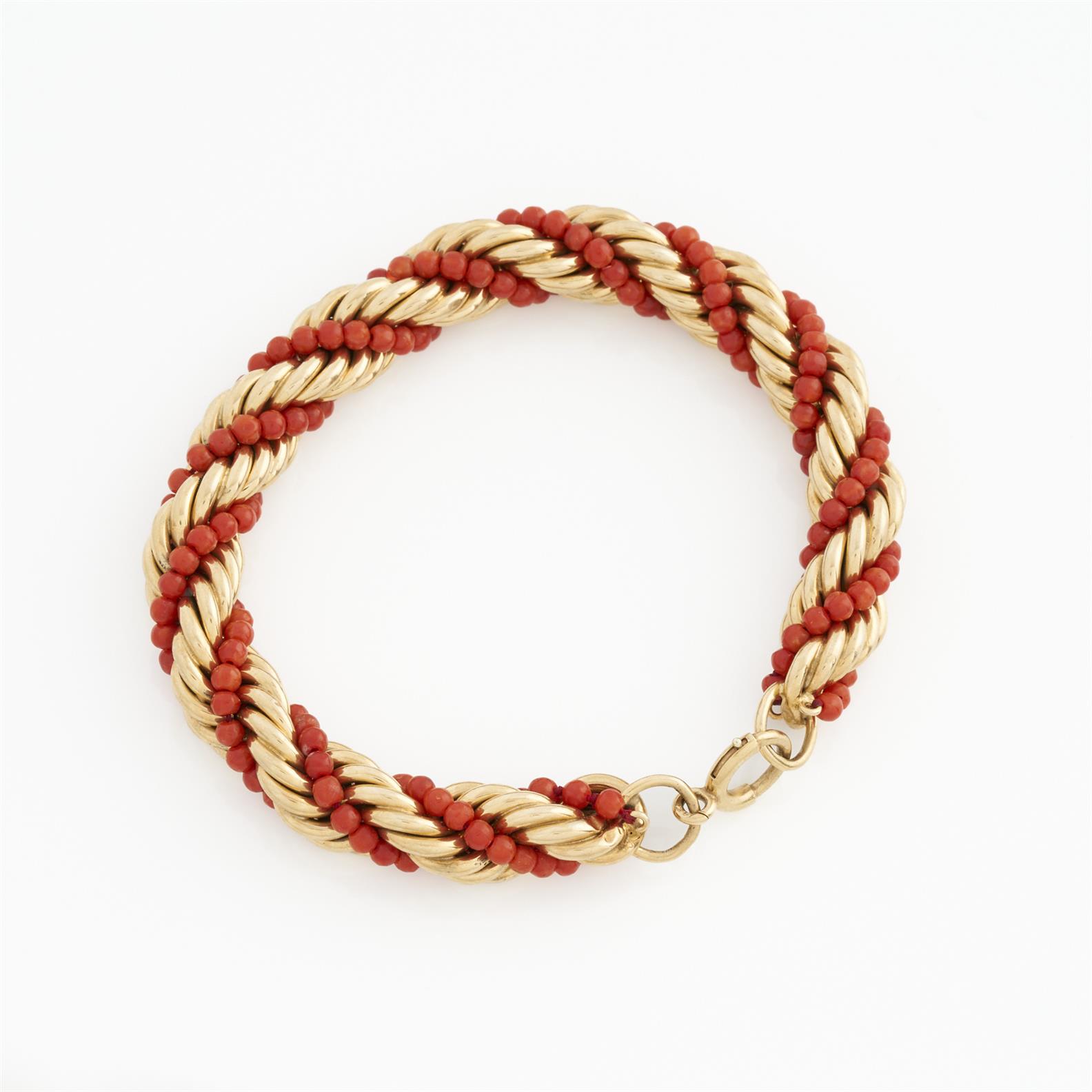 A CORAL AND 18CT GOLD BRACELET, 210MM, 24.2GMS