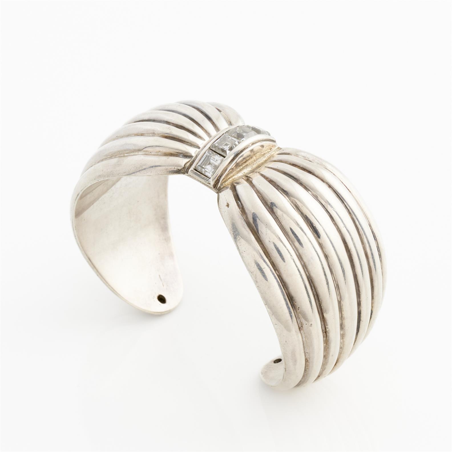 A VINTAGE GEM-SET ITALIAN CUFF IN STERLING SILVER, INNER DIAMETER APPROXIMATELY 55MM