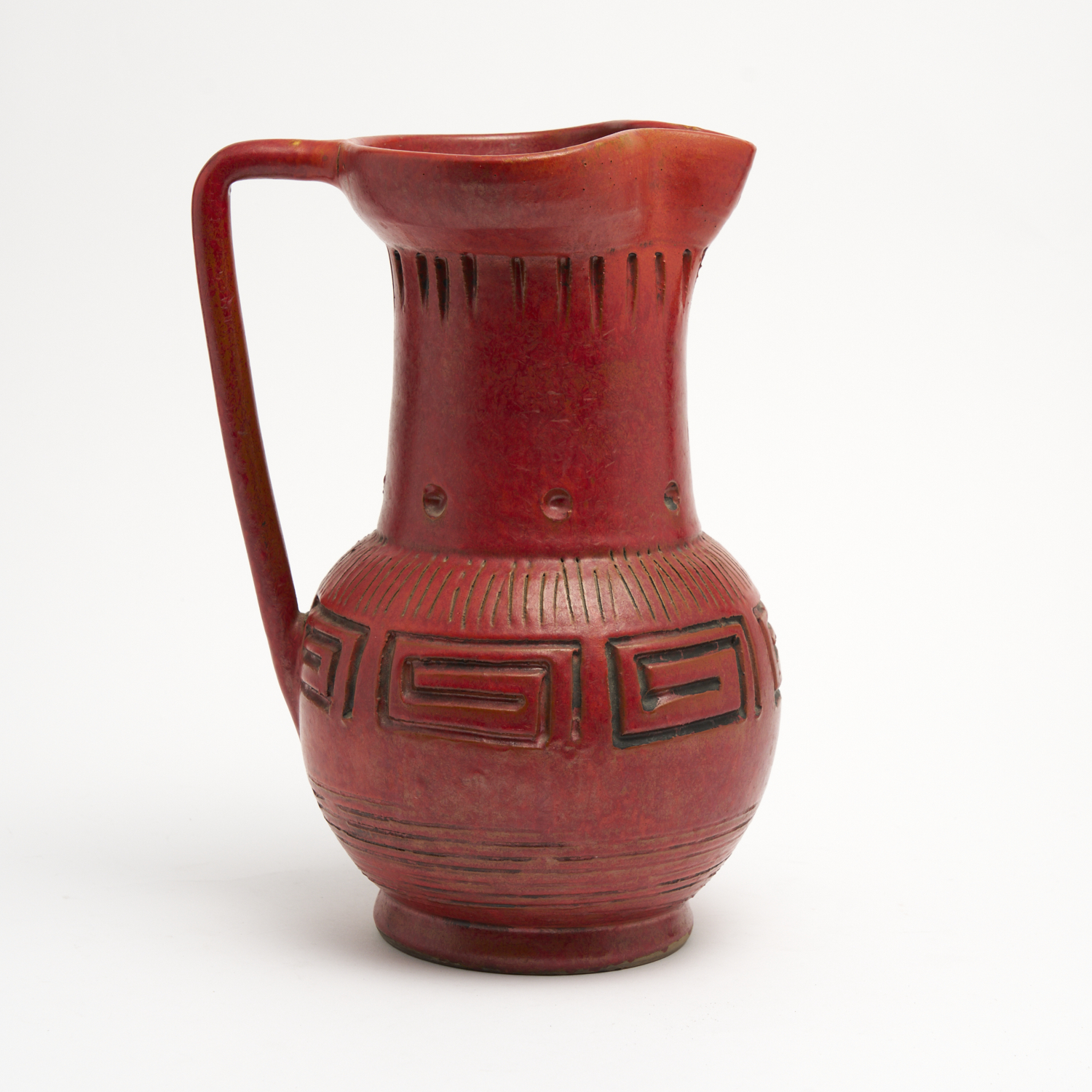 A LARGE ITALIAN RED GLAZED JUG H.30CM