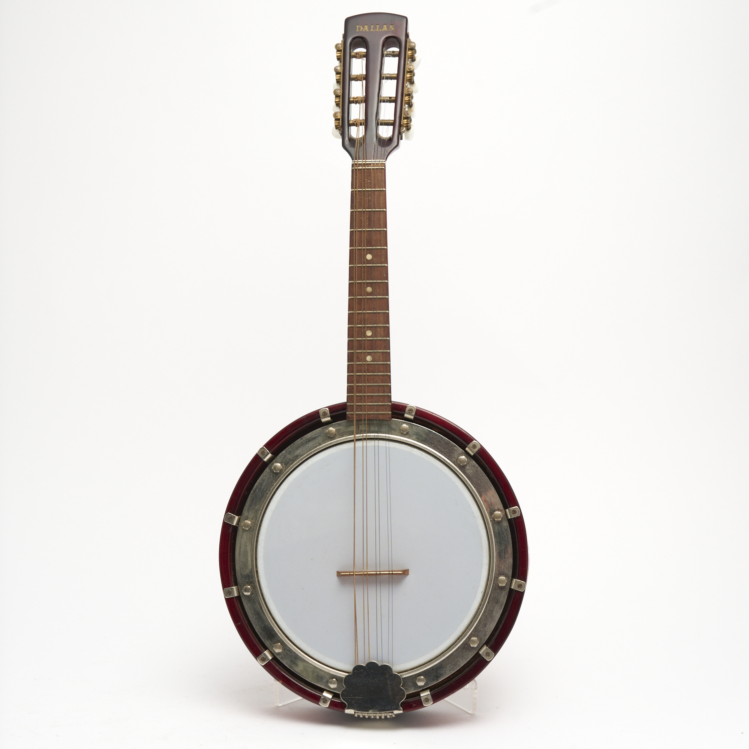 A GERMAN DALLAS EIGHT STRING WOODEN BODIED BANJO, RETAILED BY NICHOLSON'S SYDNEY W.61CM