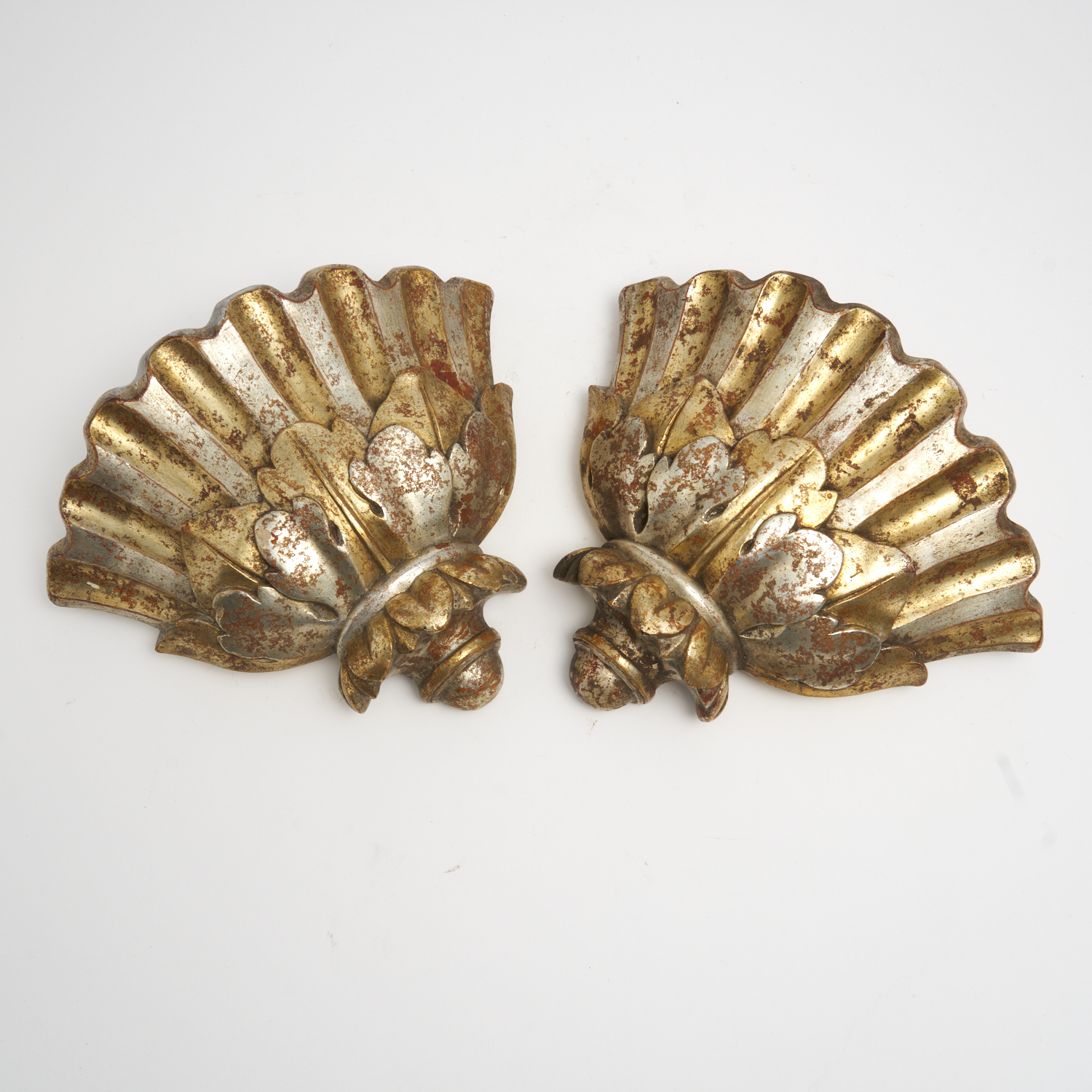 A PAIR OF FRENCH SILVERED AND GILDED PLASTER WALL SCONCES H.26CM