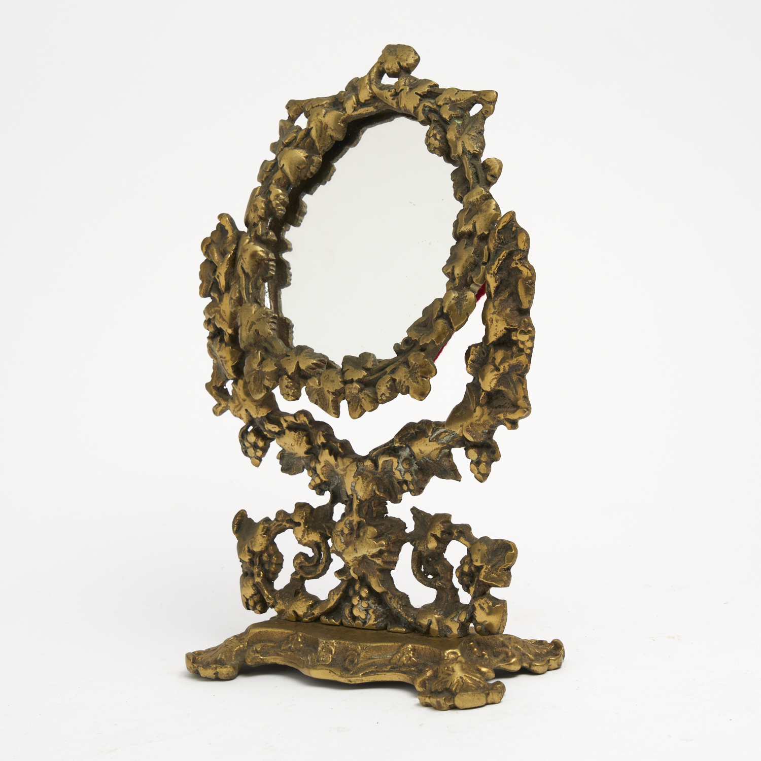 A FRENCH SOLID BRONZE GRAPE LEAF DECORATED DRESSING TABLE MIRROR H.28.5CM