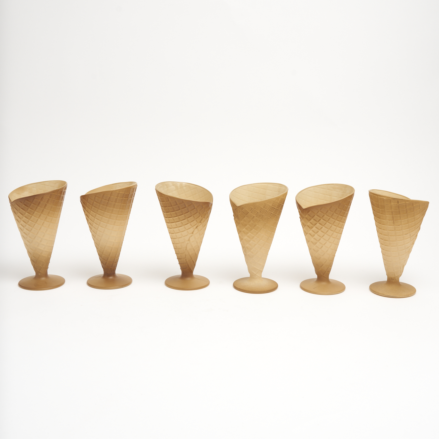 A SET OF SIX MID-CENTURY ITALIAN ICE CREAM CONE FORM GLASSES H.16.5CM