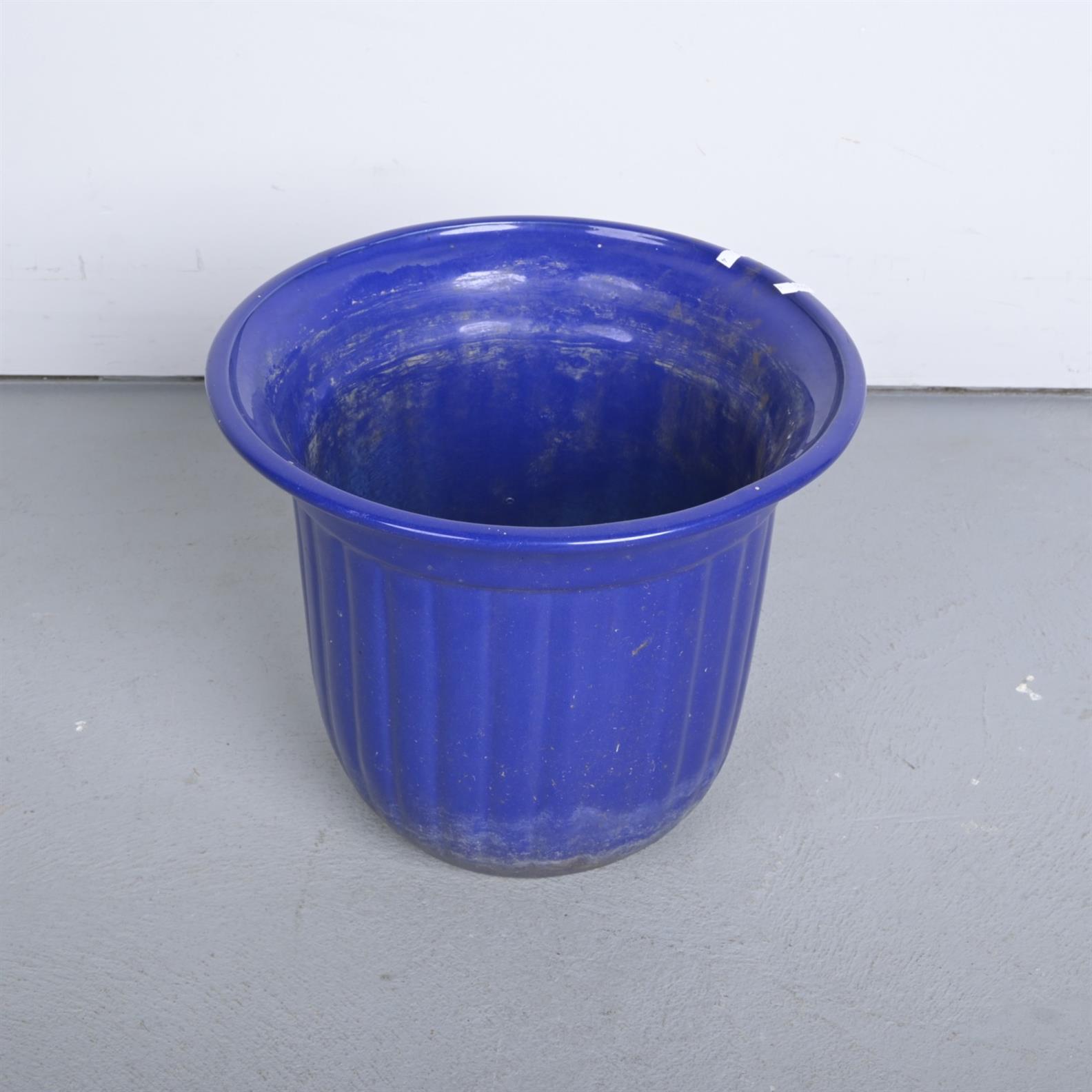 A BLUE GLAZED GARDEN POT (31H X 37DIA CM)