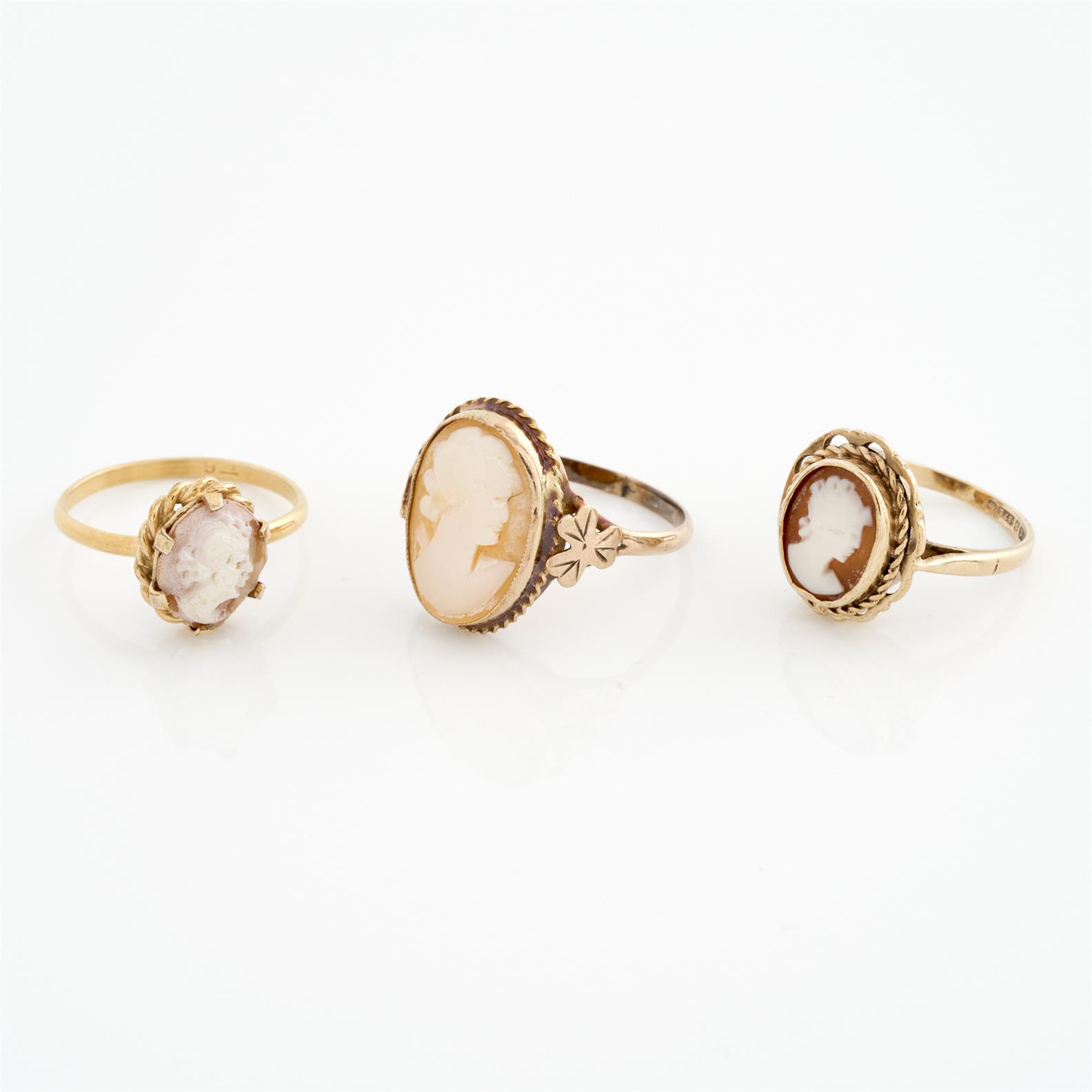 A COLLECTION OF EDWARDIAN CAMEO RINGS, SIZE G1/2, K, N1/2, 6.1GMS