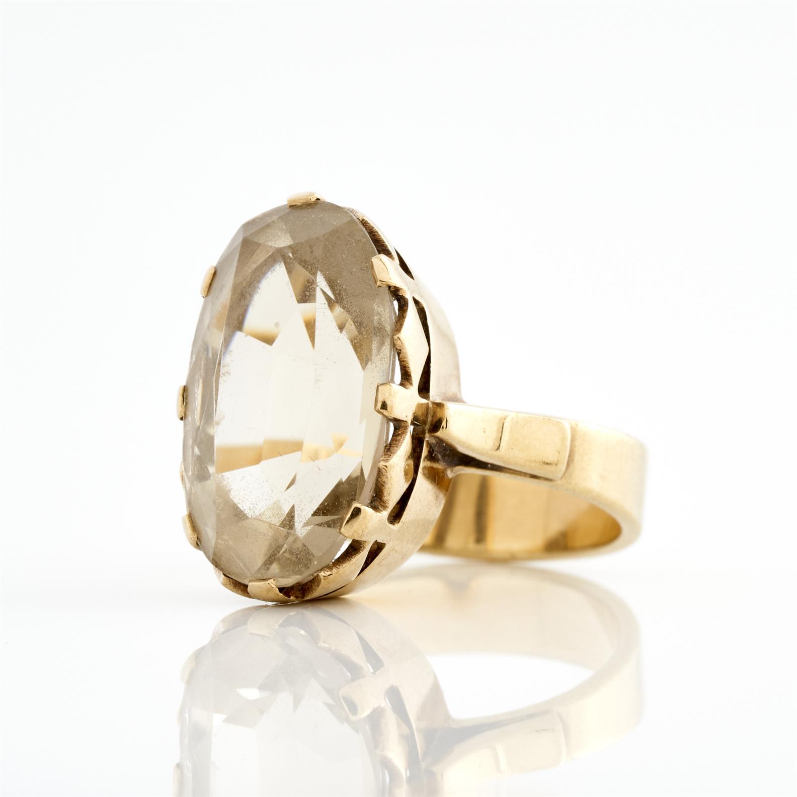 A QUARTZ RING IN 9CT GOLD, SIZE K1/2, 5.7GMS