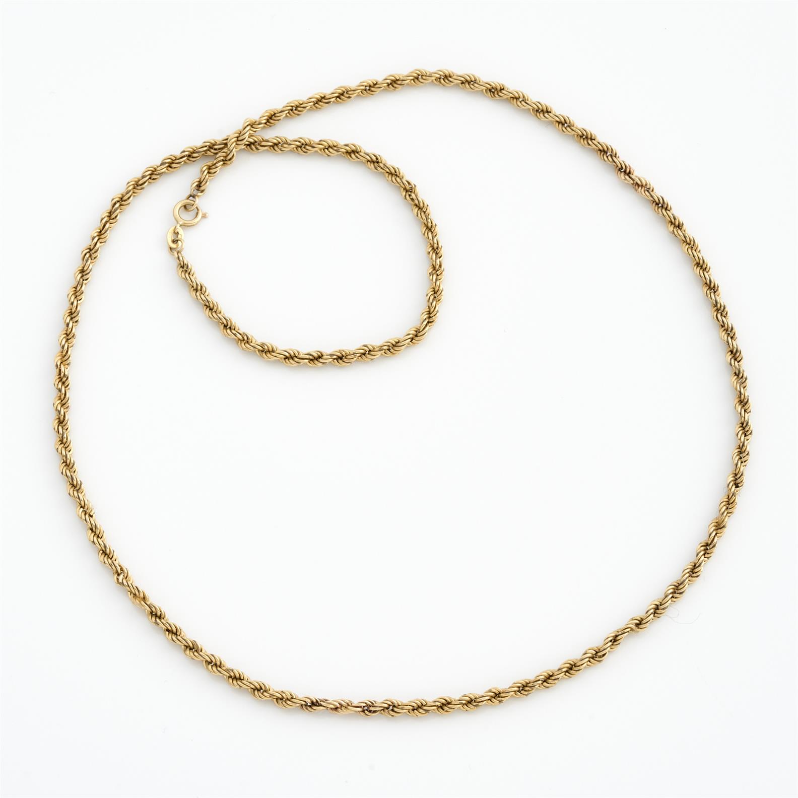 A VINTAGE ITALIAN ROPE TWIST CHAIN IN 9CT GOLD, 600MM, 9.4GMS